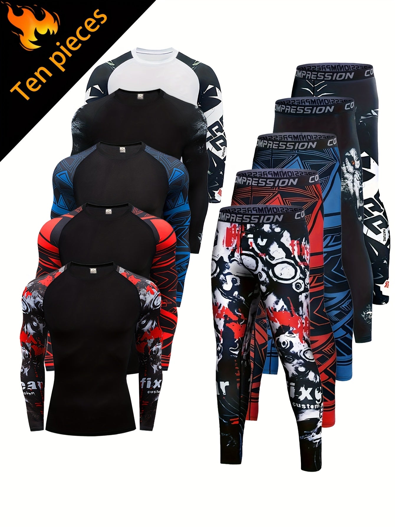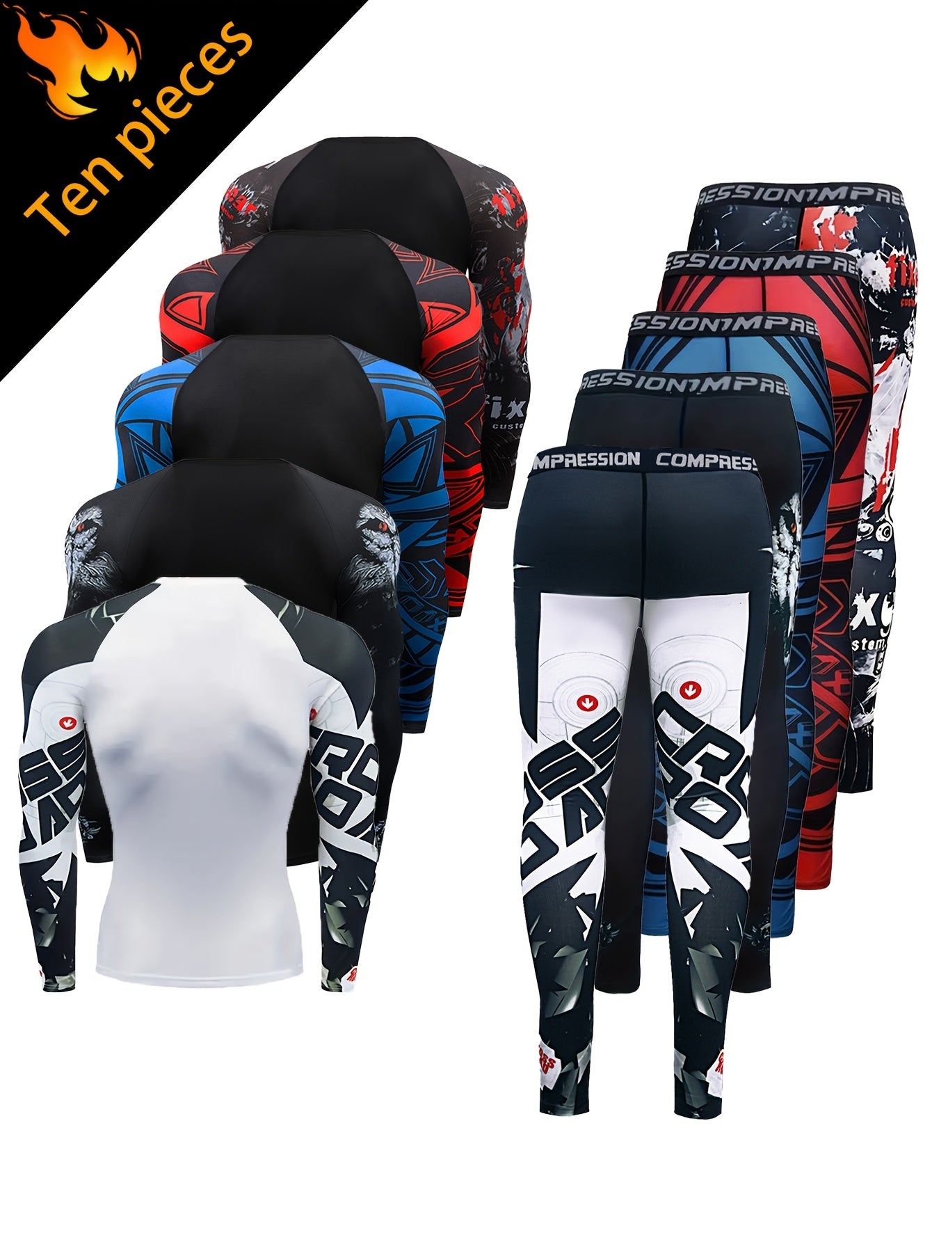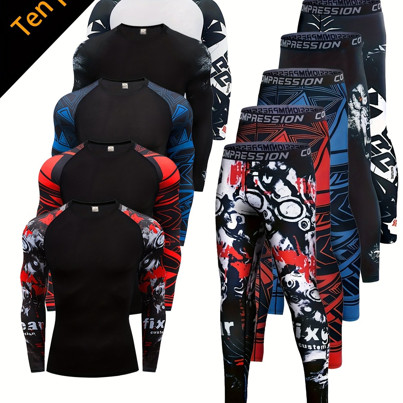 10pcs of Men's sports long sleeve trousers camouflage suit can go out to exercise fitness running,