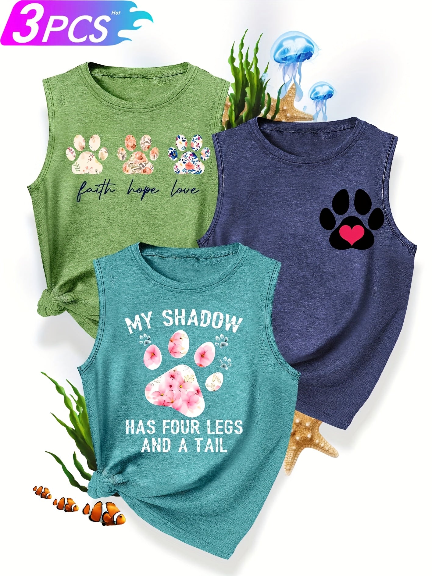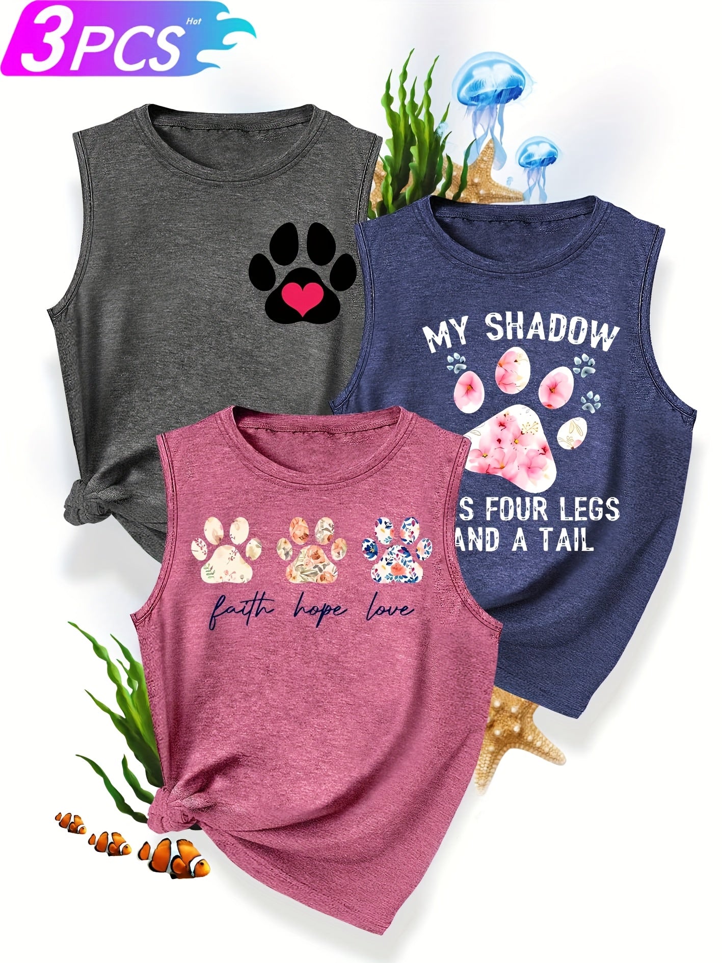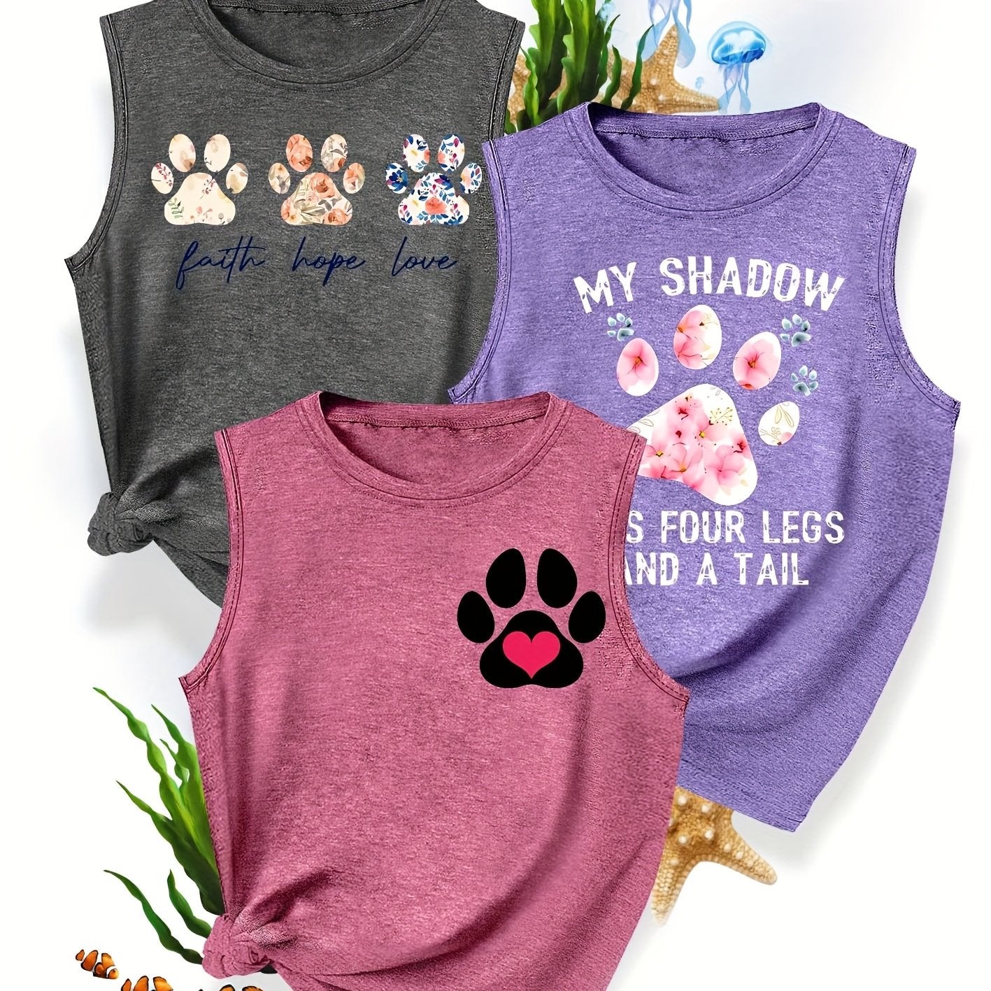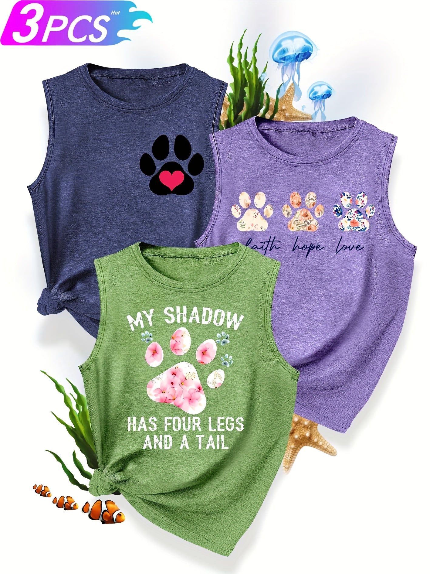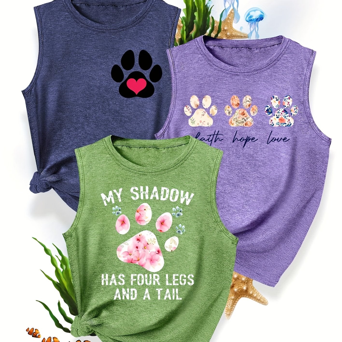 [3-Pack Pet Print Tank Tops]