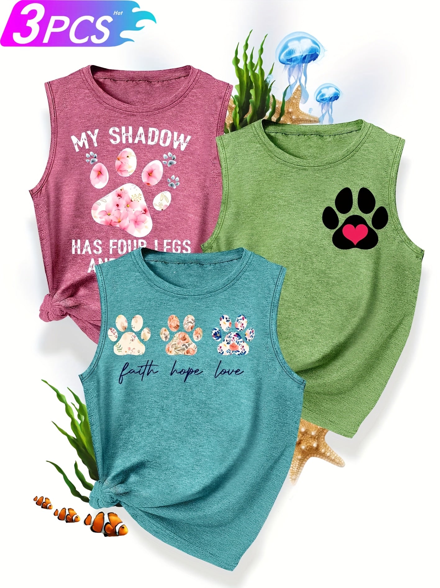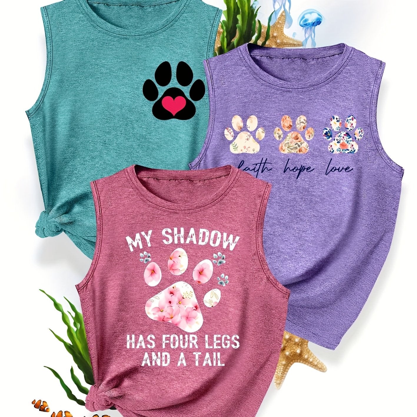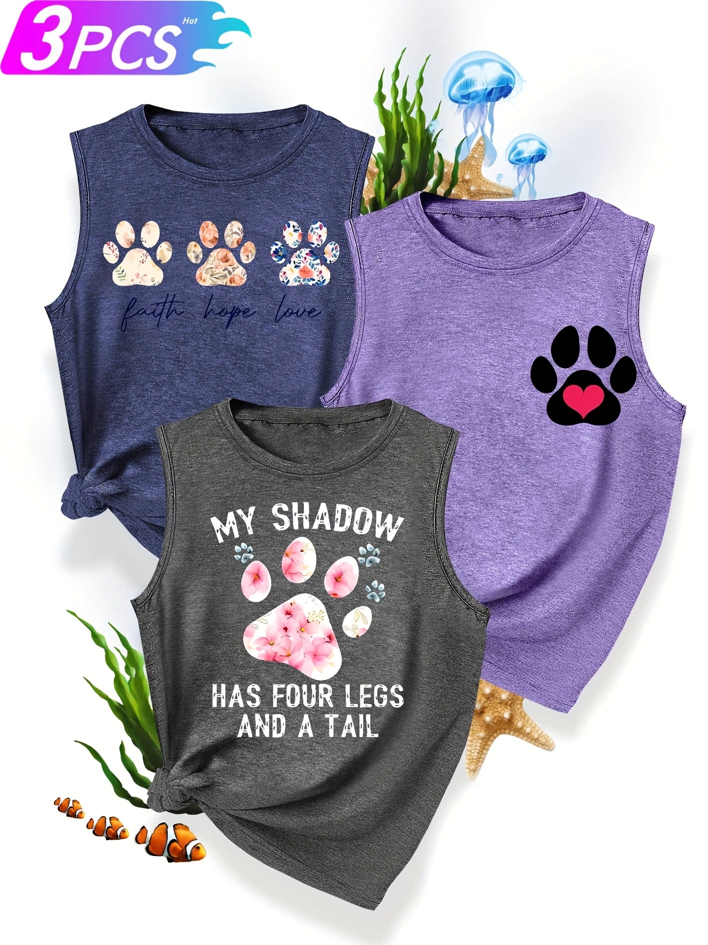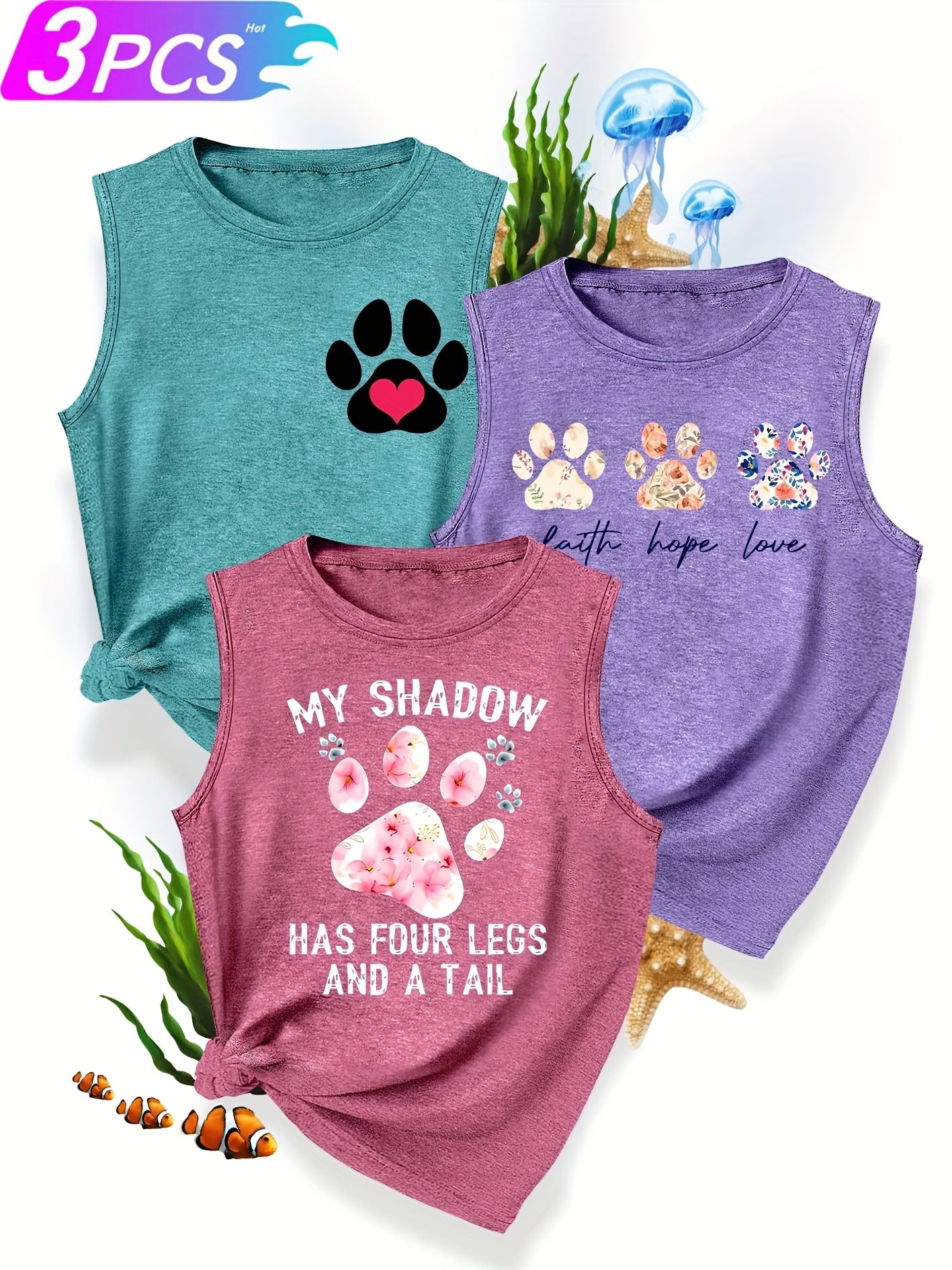 [3-Pack Pet Print Tank Tops]