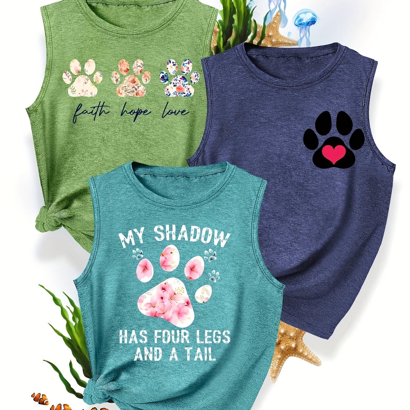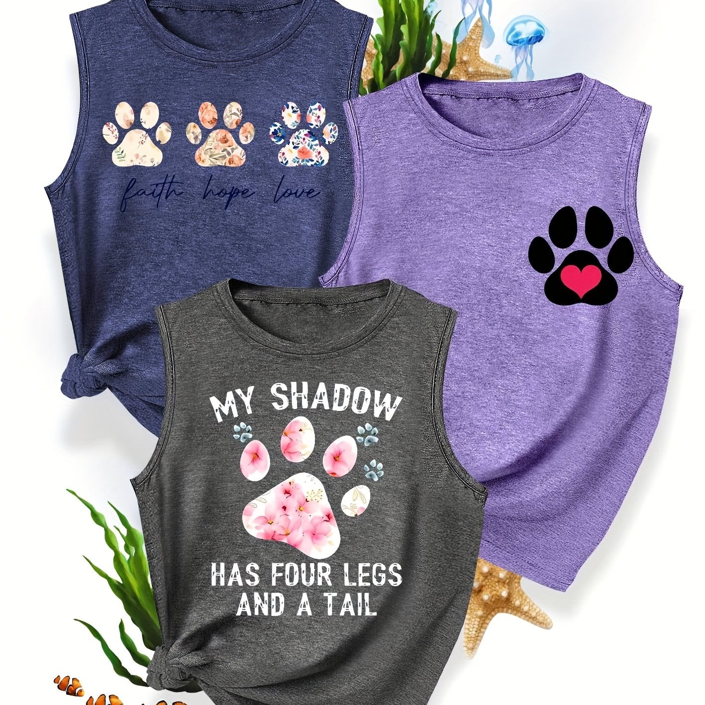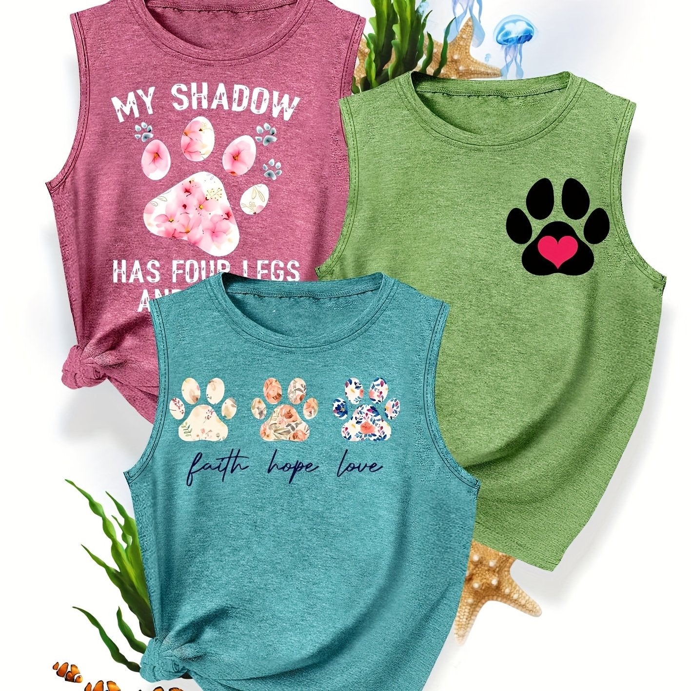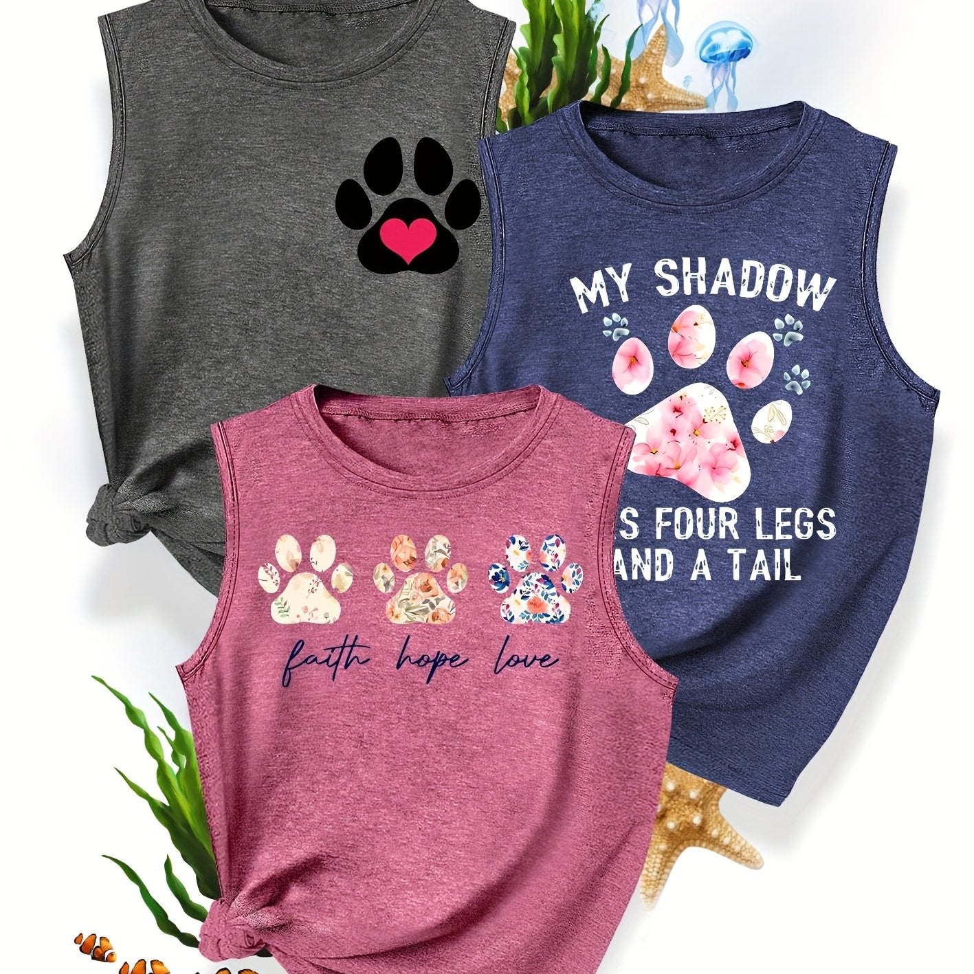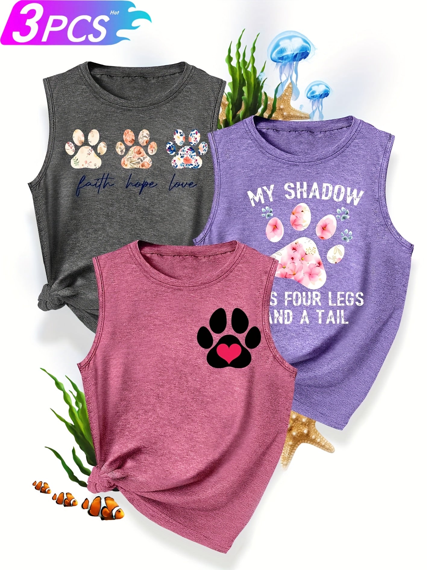 [3-Pack Pet Print Tank Tops]