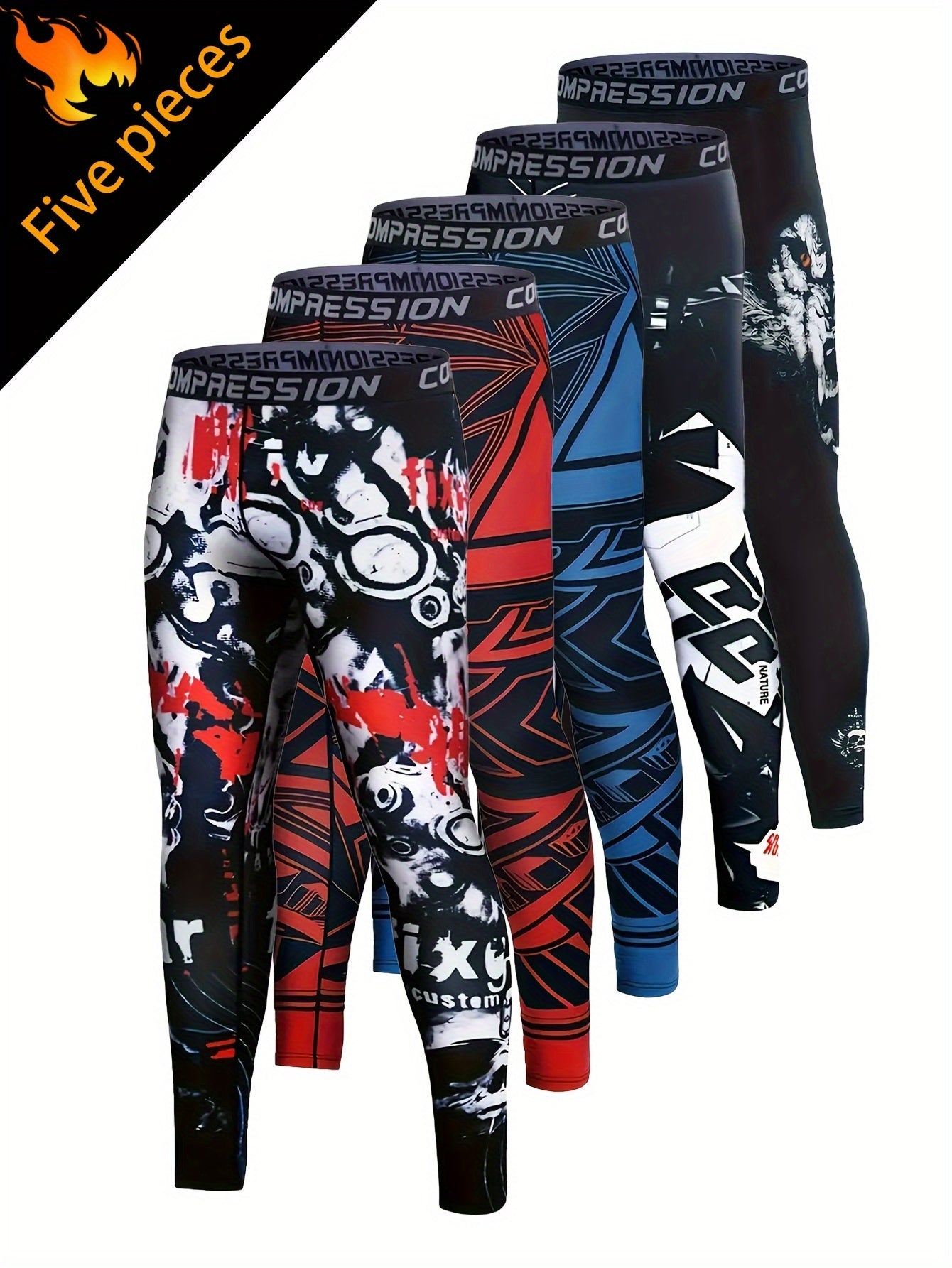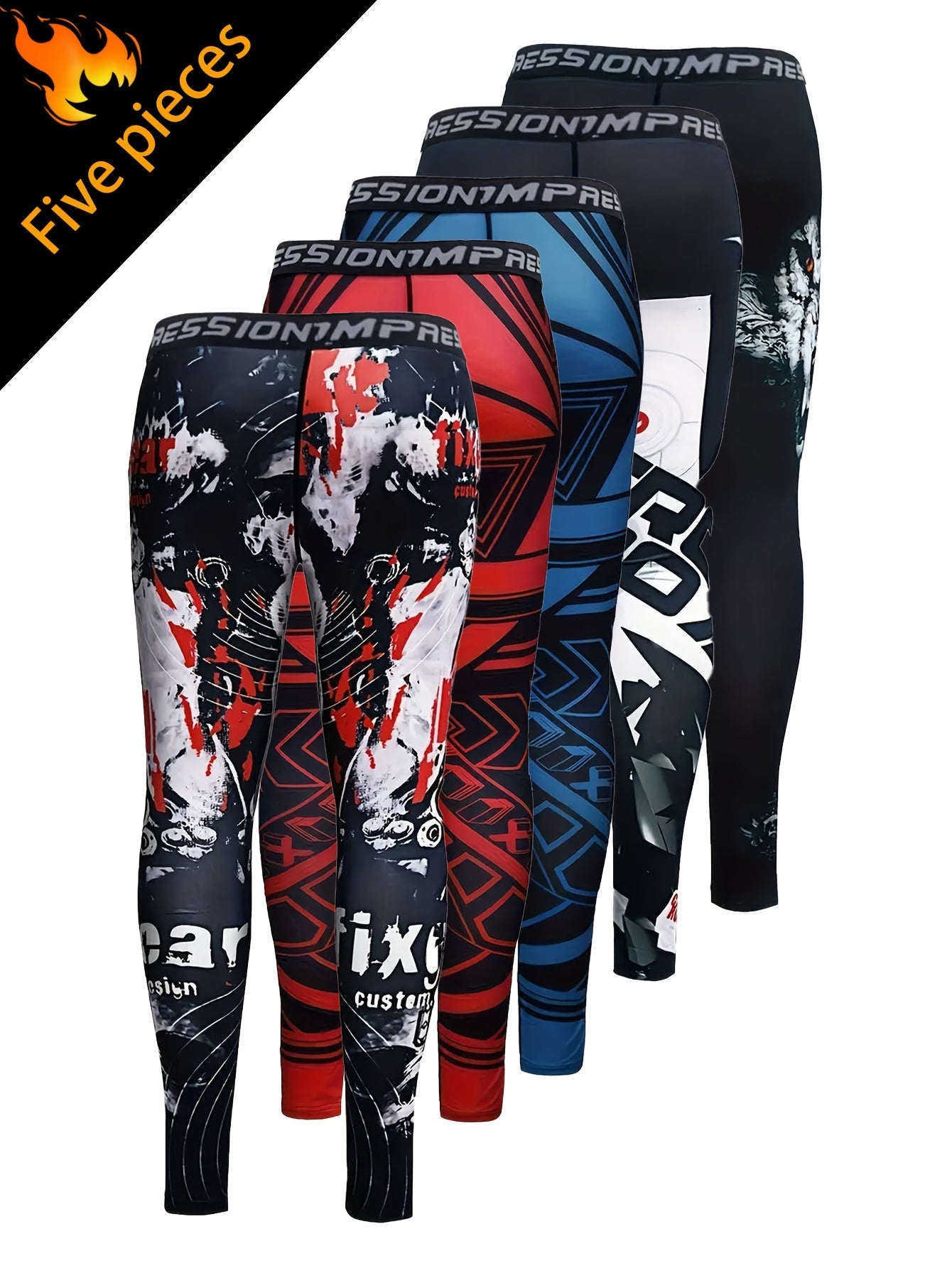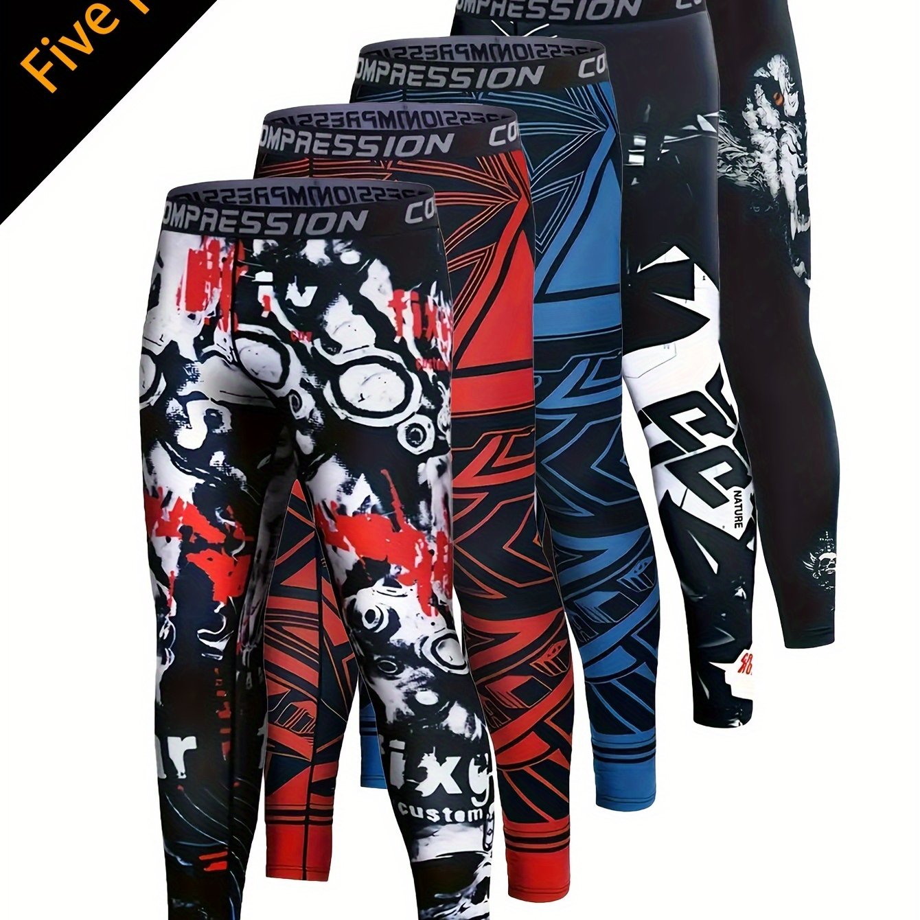 5pcs Men's Camo Compression Leggings -