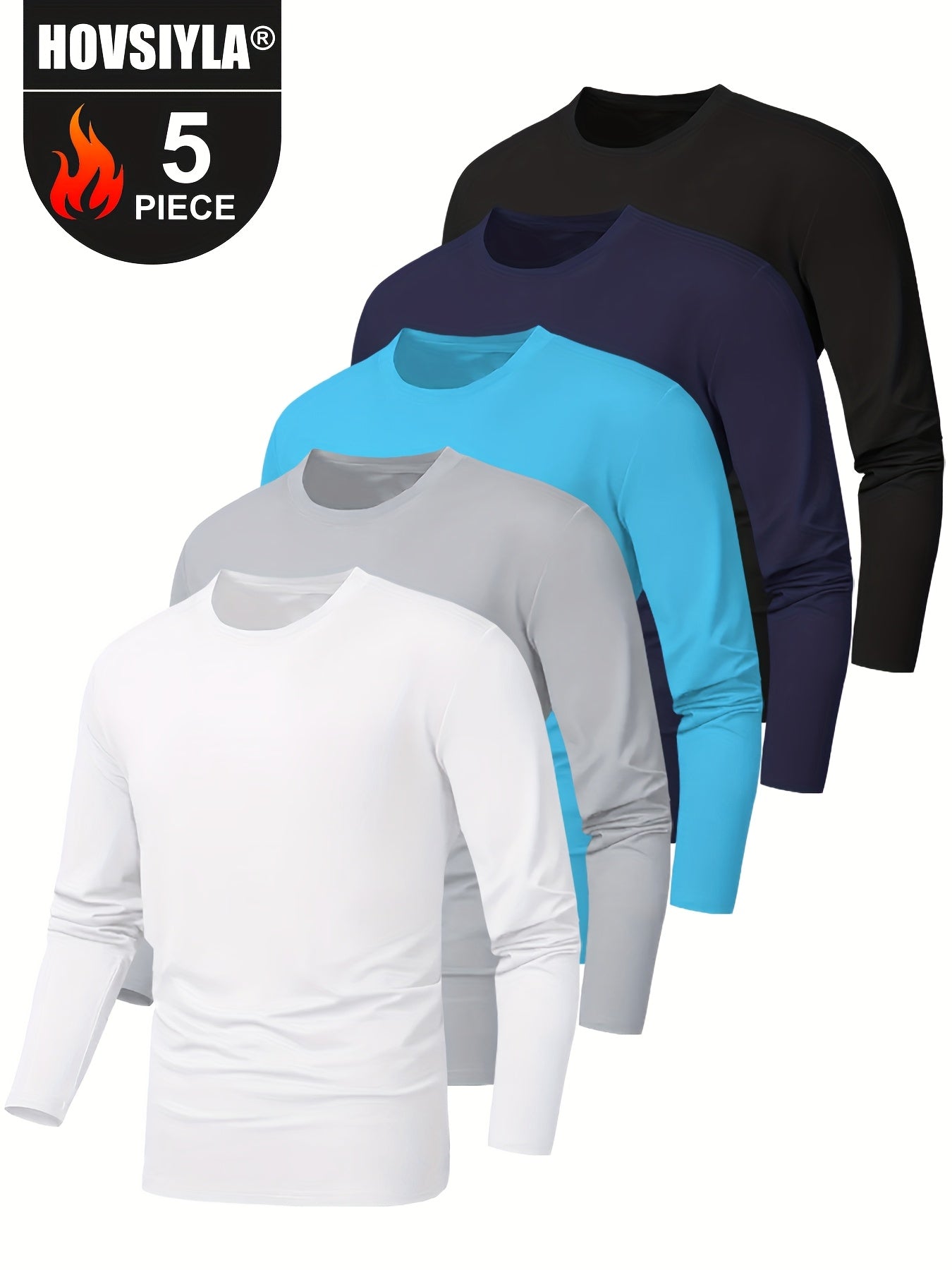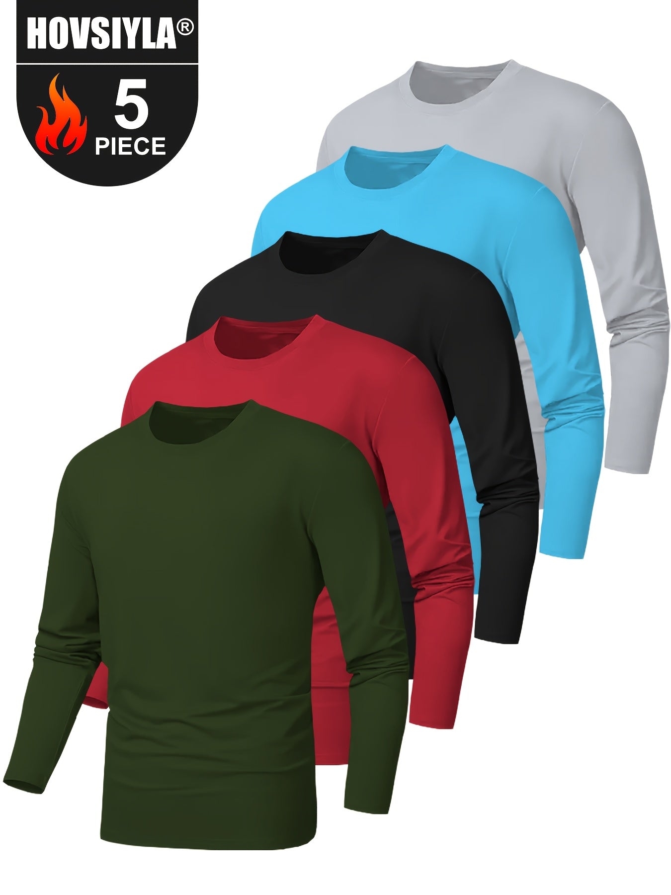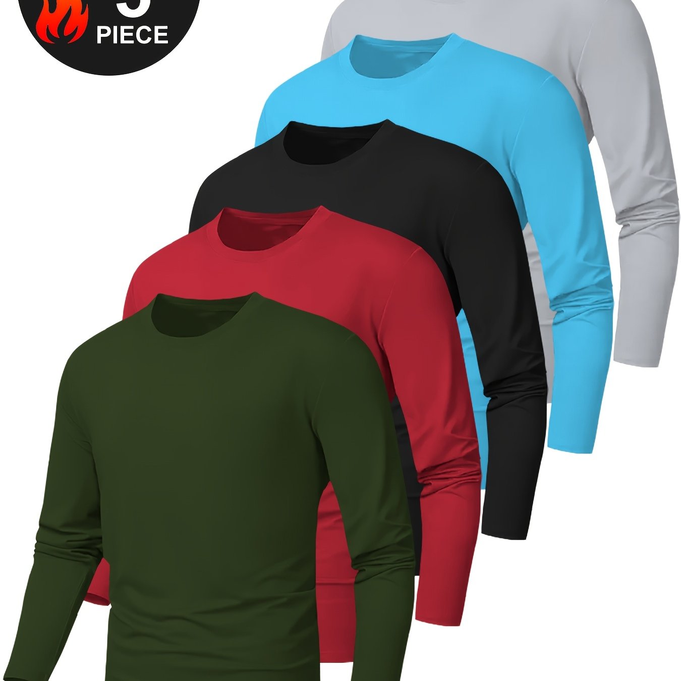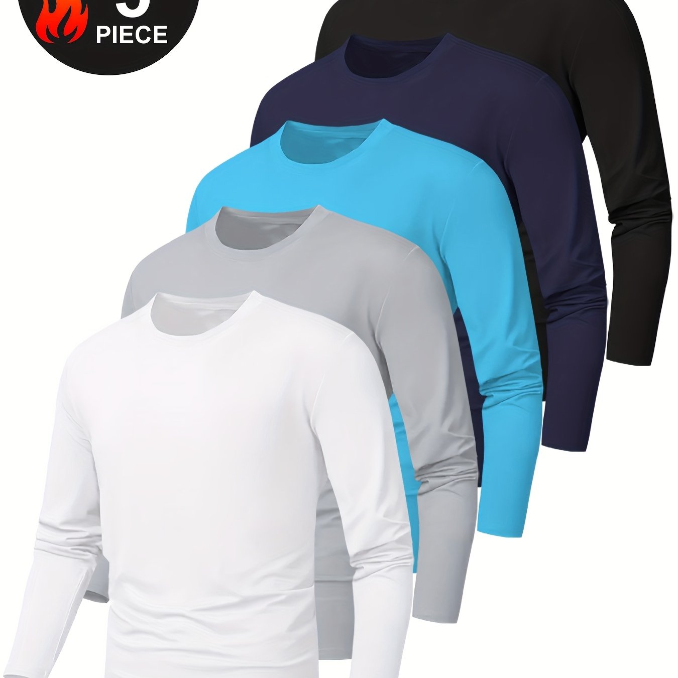 5pcs Men's Premium Quick-Dry Long Sleeve Athletic T-Shirts