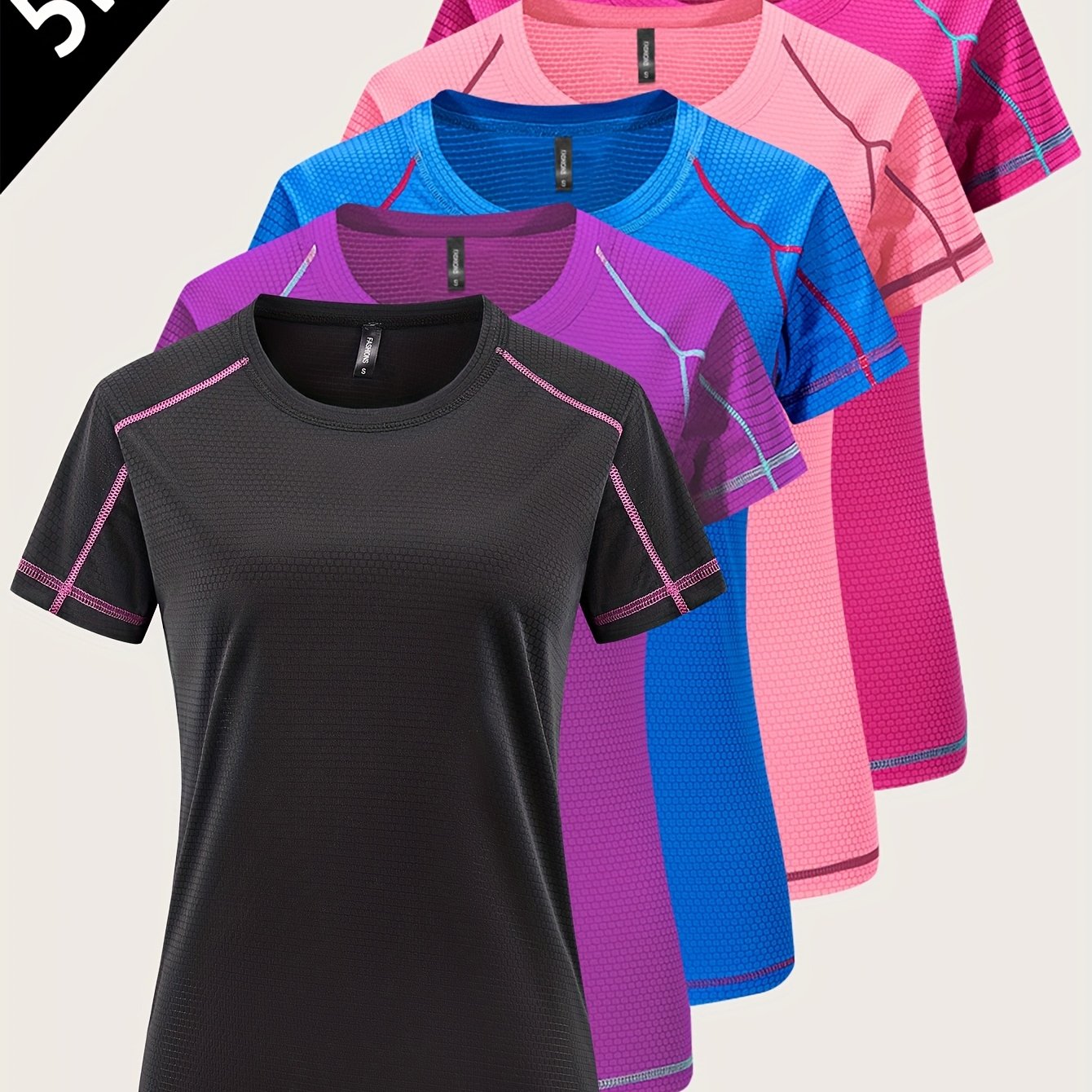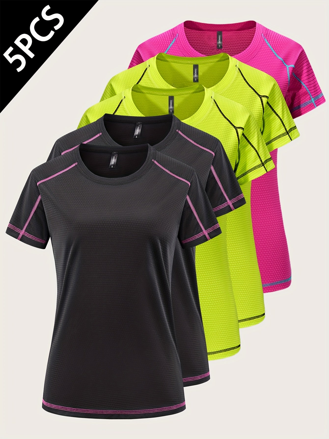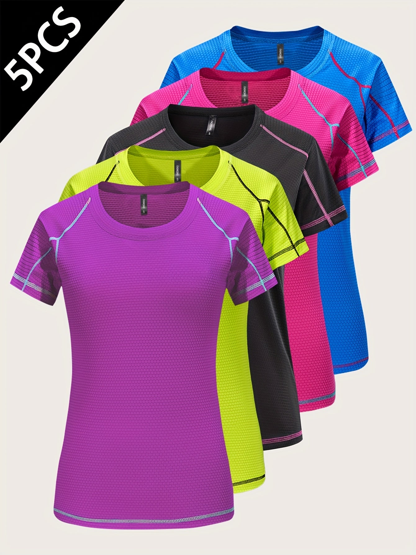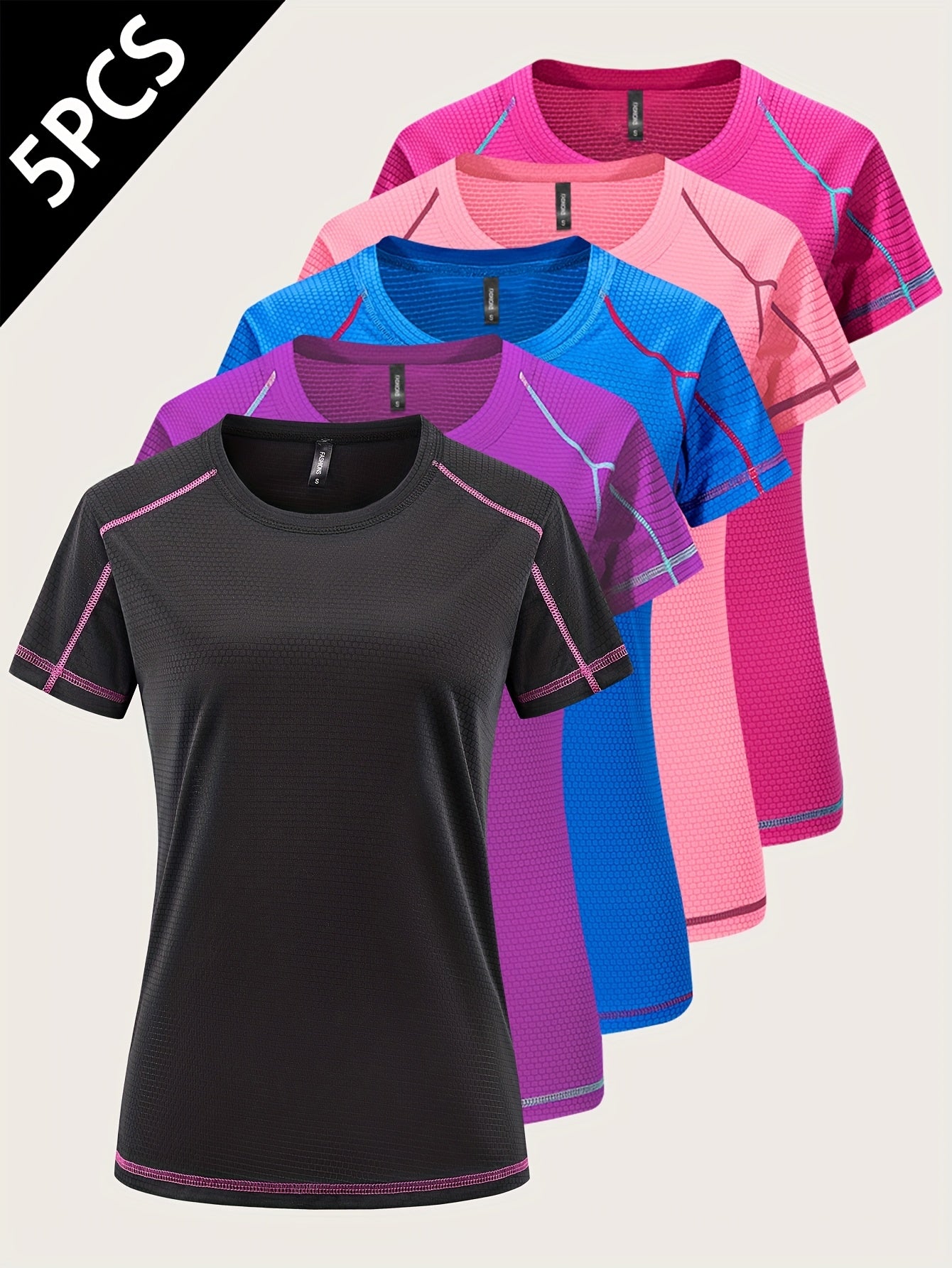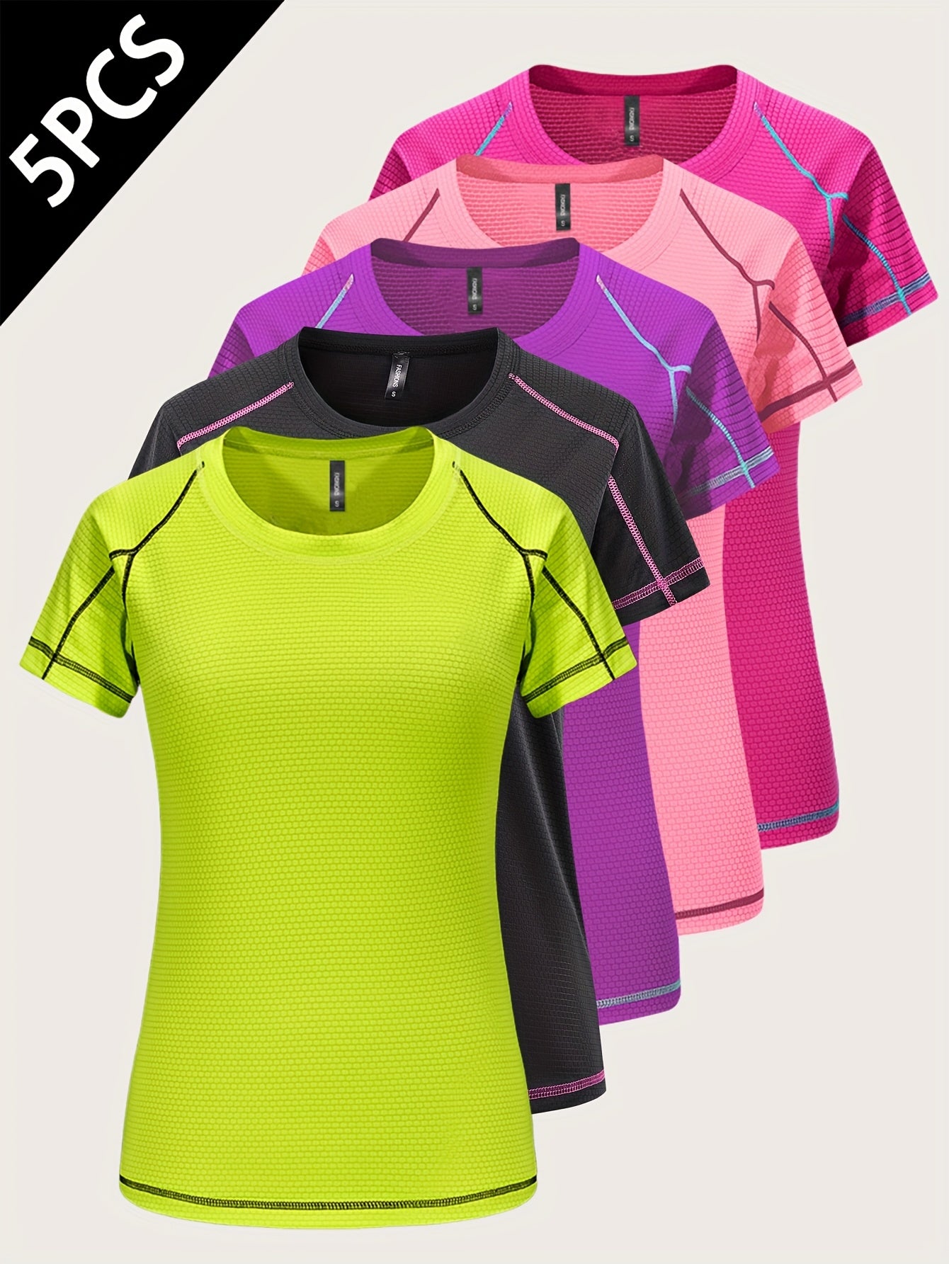 [5pcs Quick-Dry Tops] 5pcs Women's Quick-Dry Athletic T-Shirts