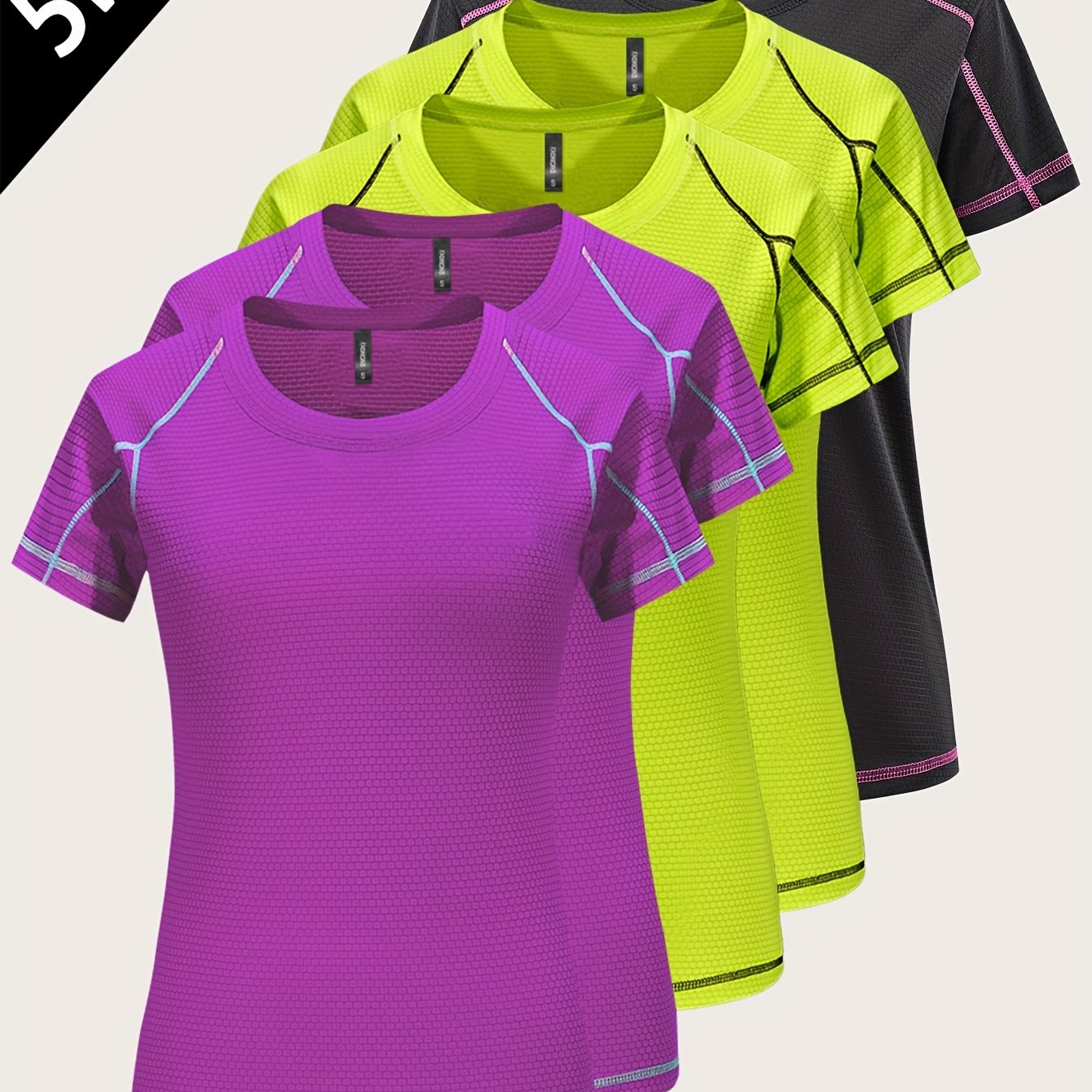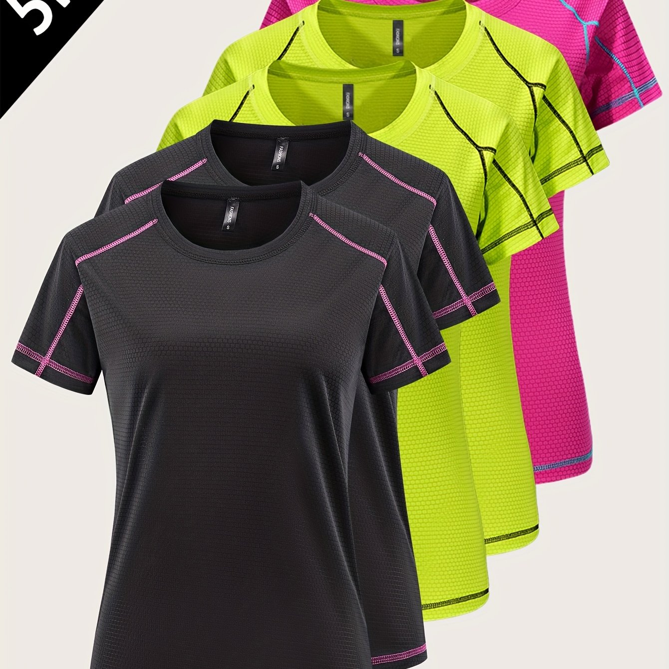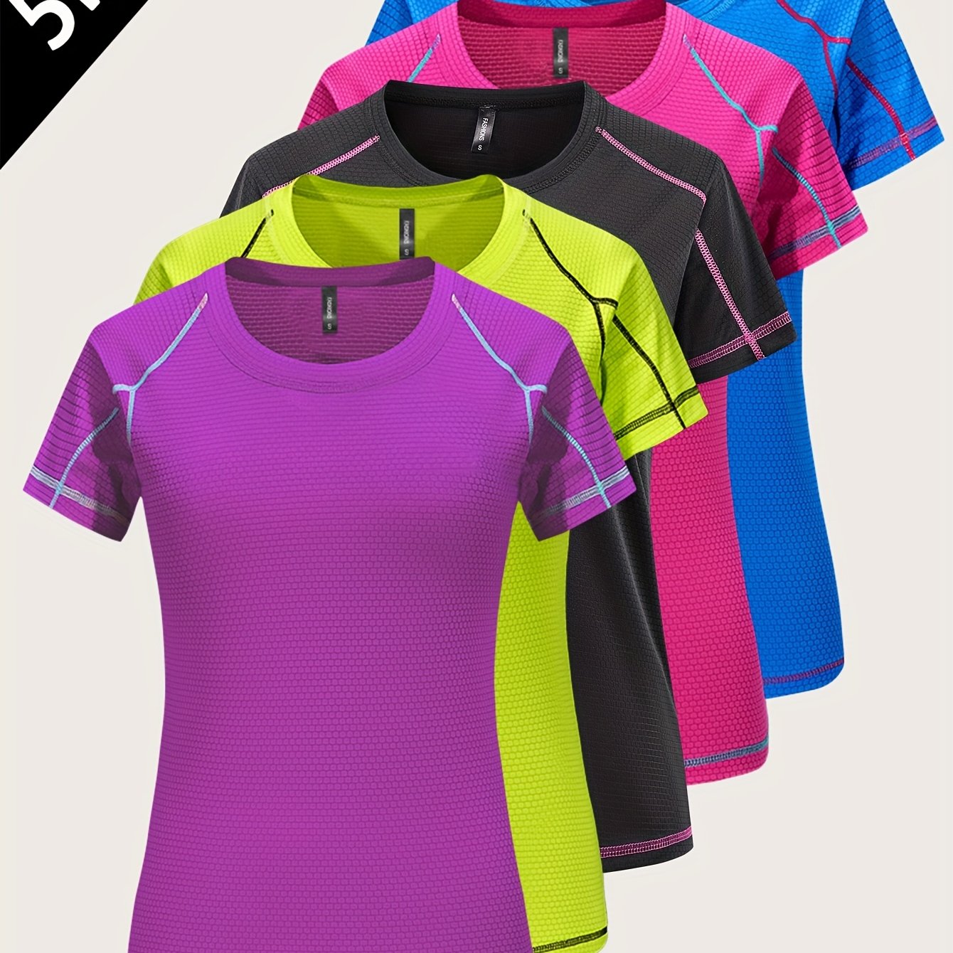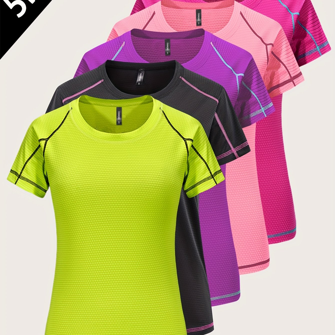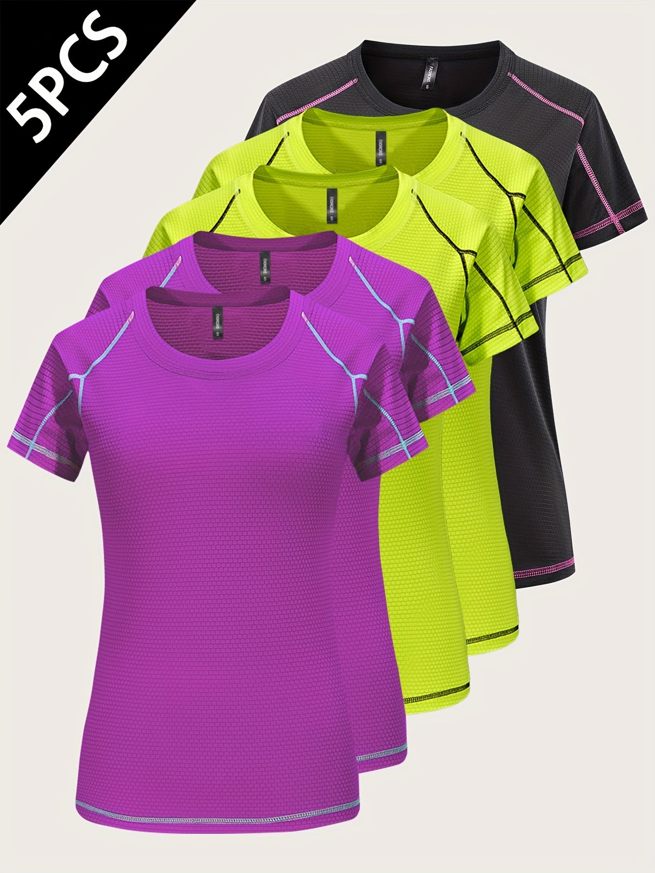 [5pcs Quick-Dry Tops] 5pcs Women's Quick-Dry Athletic T-Shirts