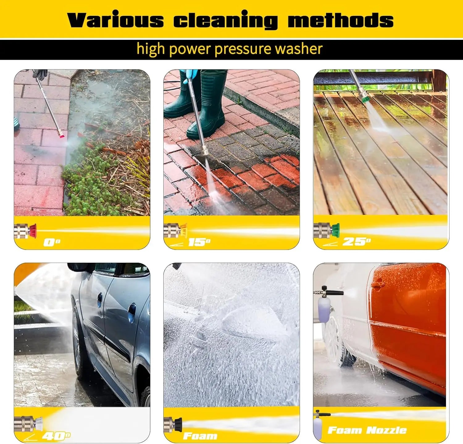 - Adjustable Spray Options: Includes 5 quick-connect nozzles (0°, 15°, 25°, 40°, 65°) for versatile cleaning needs.