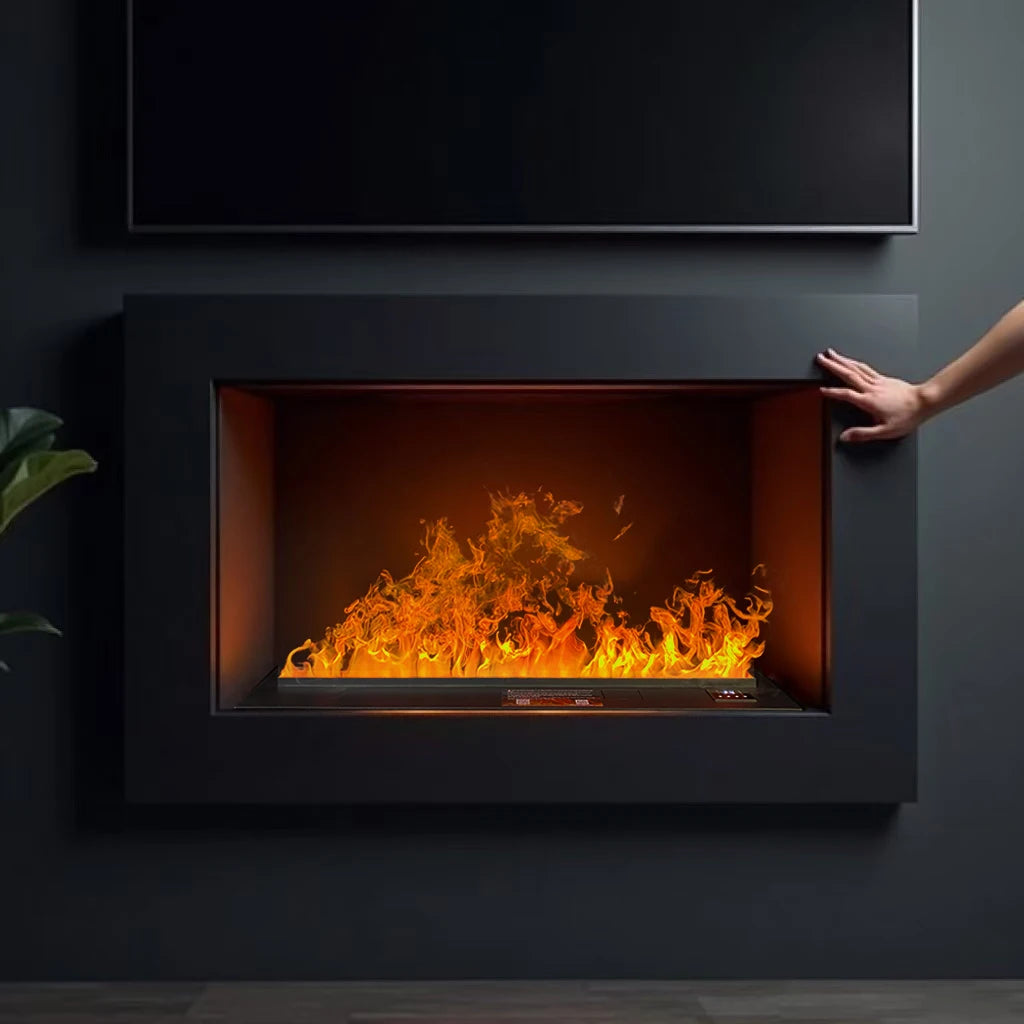 Experience a stunning, app-controlled 3D water vapor fireplace that brings warmth and ambiance to any room.