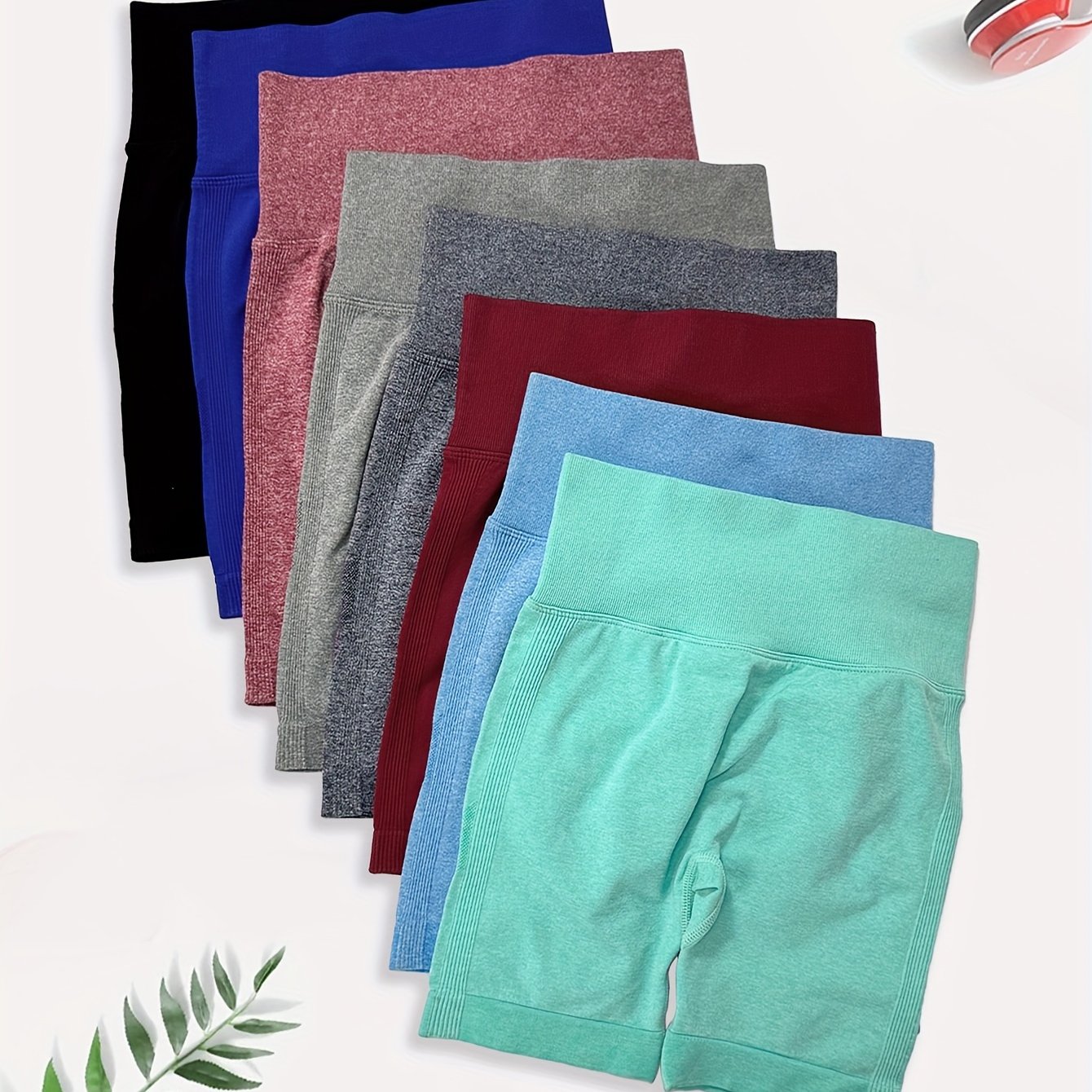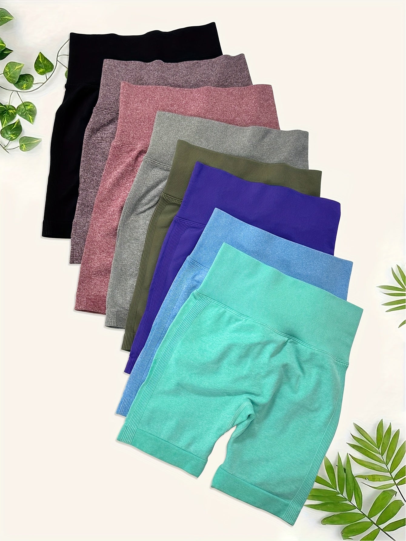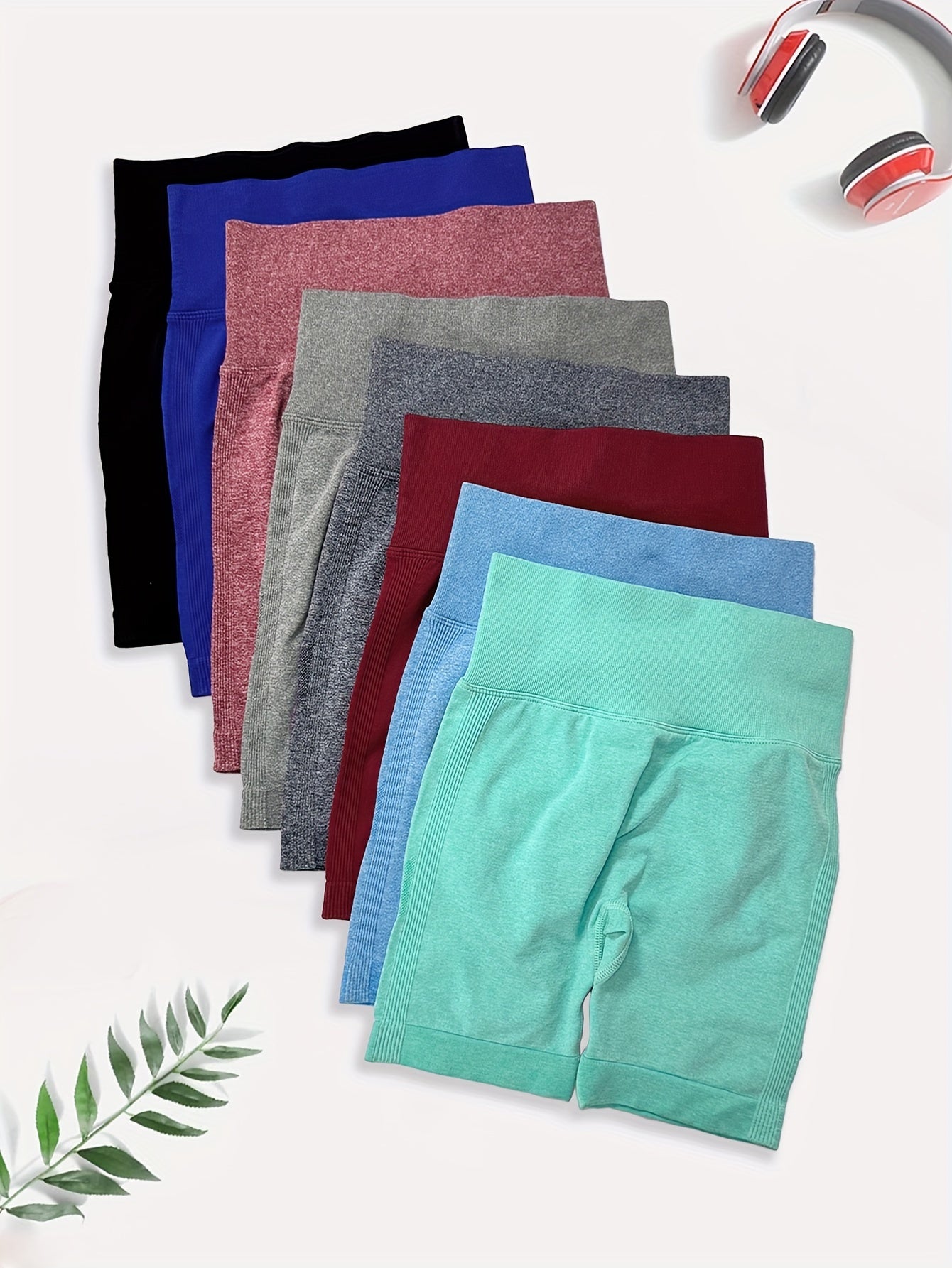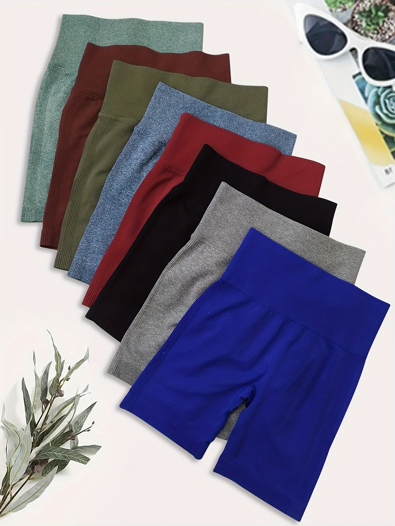 High Waisted 8pcs Solid Color Sports Shorts