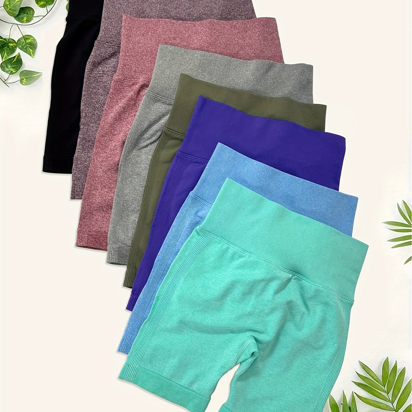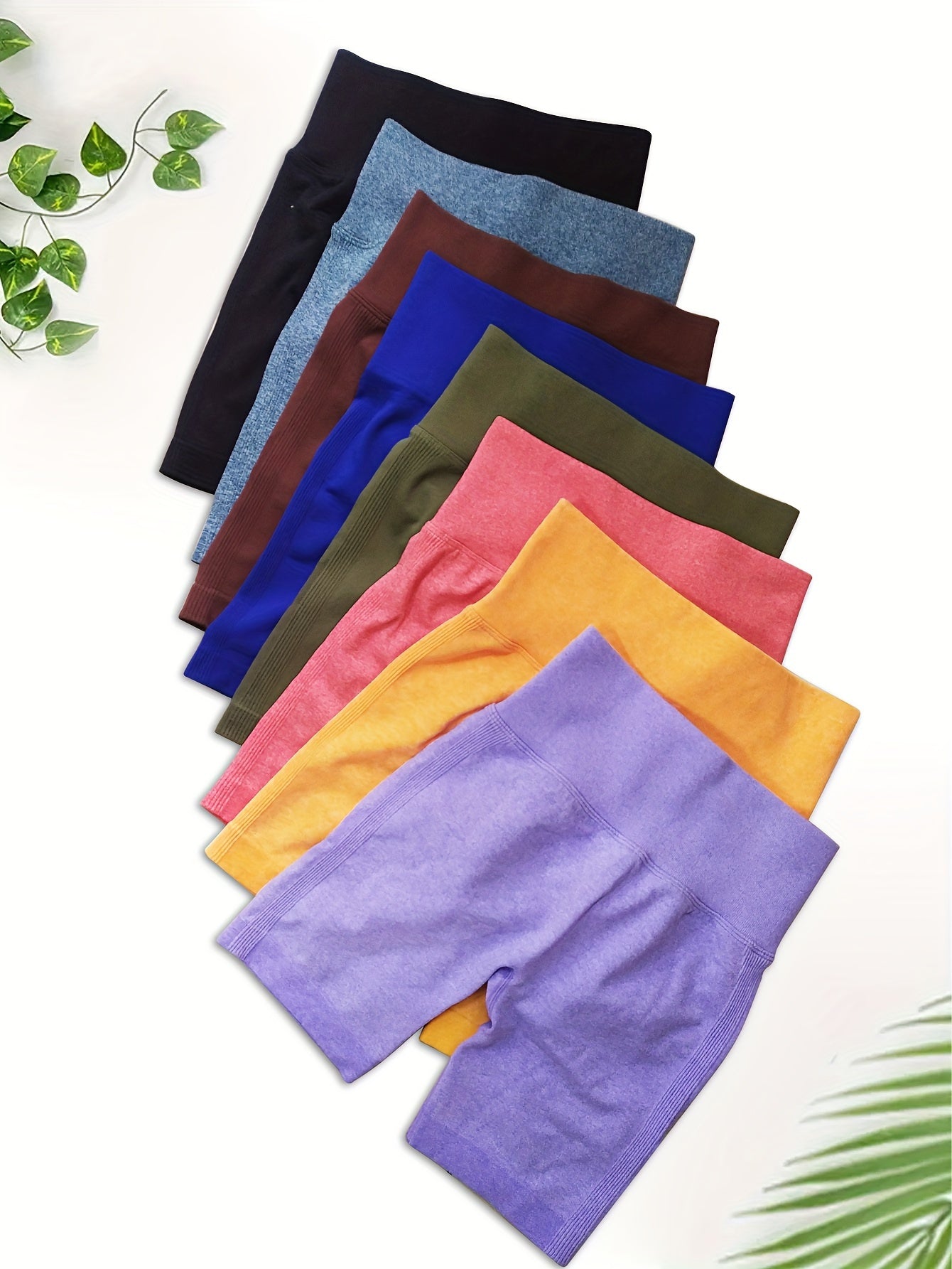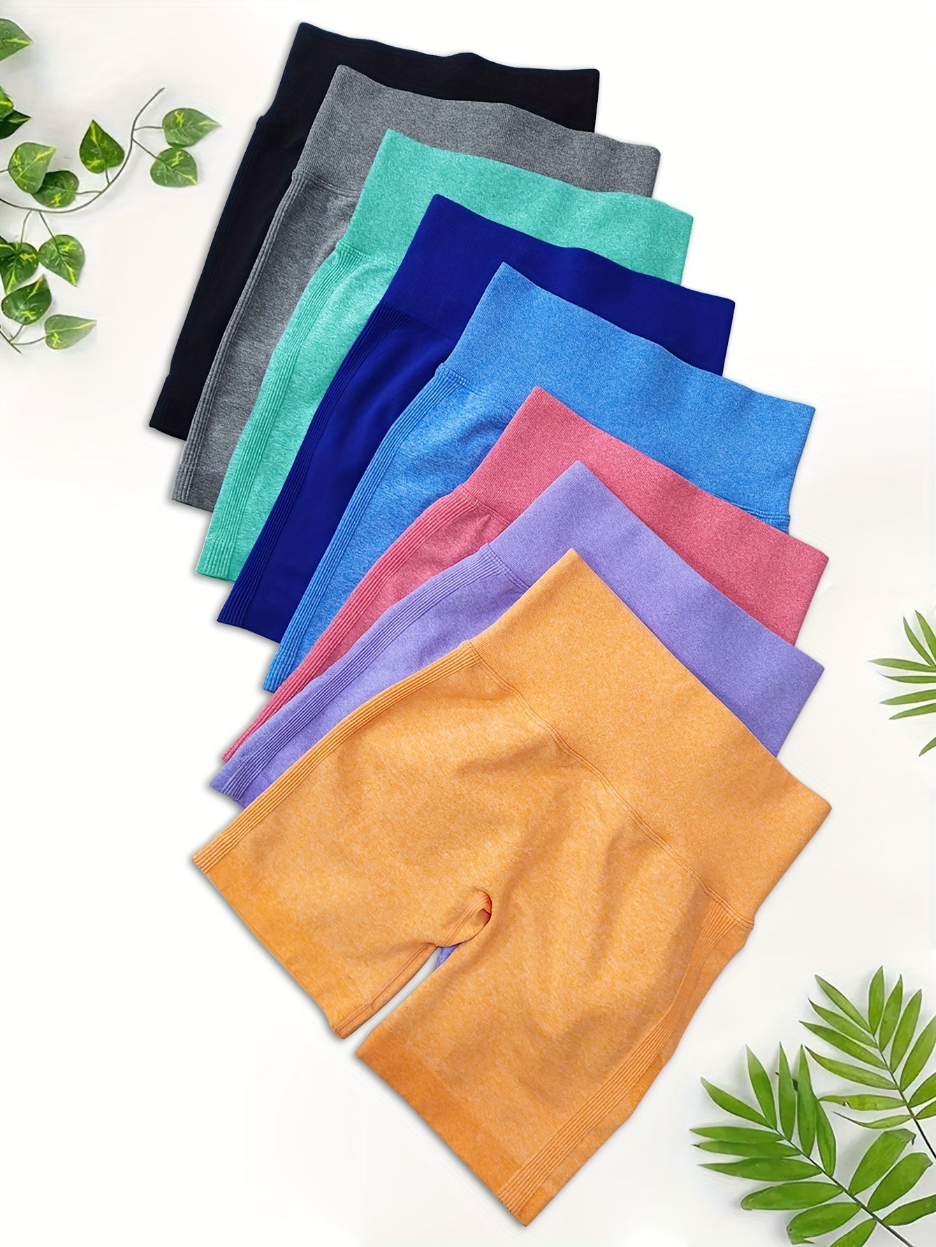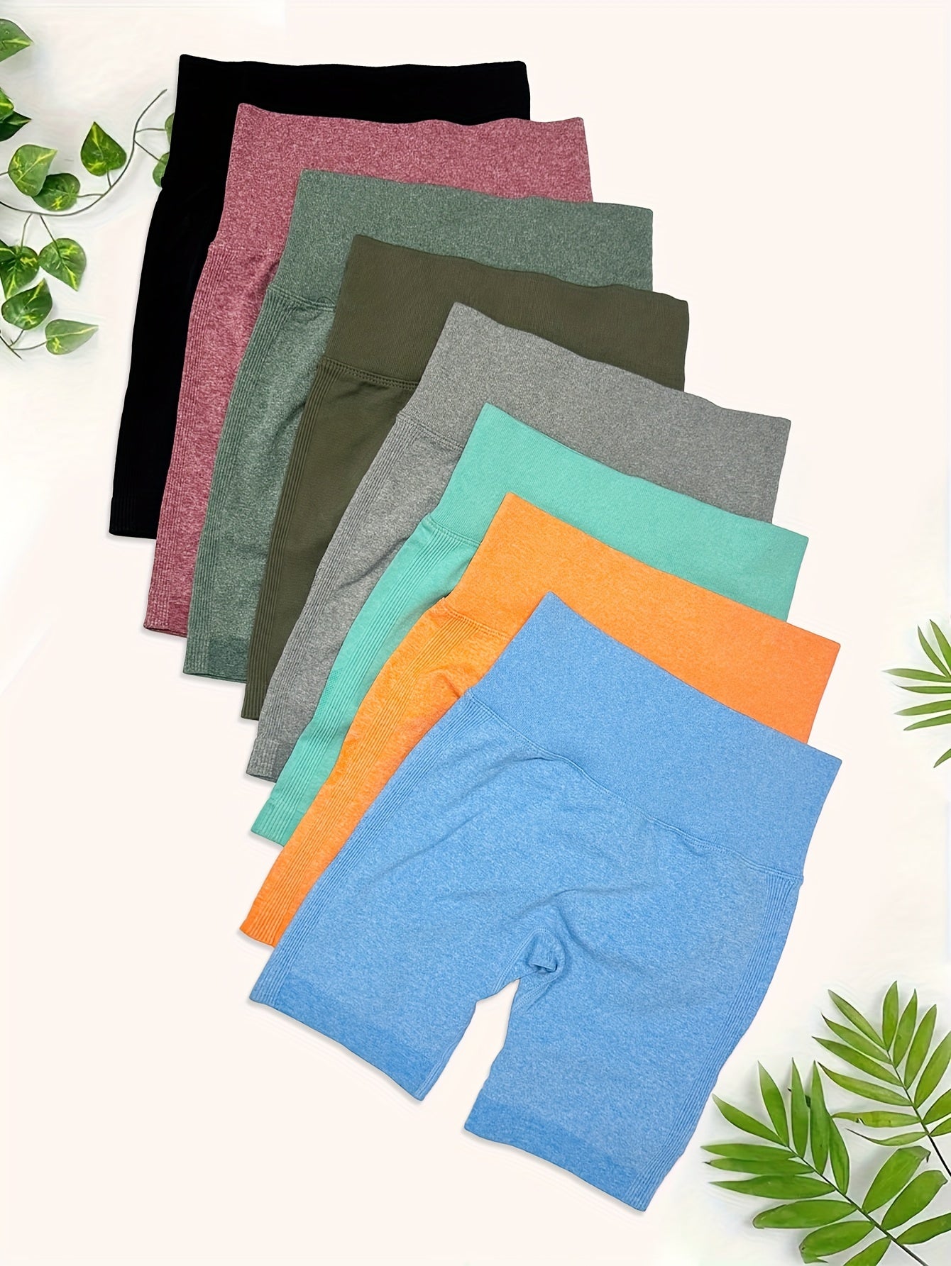 High Waisted 8pcs Solid Color Sports Shorts