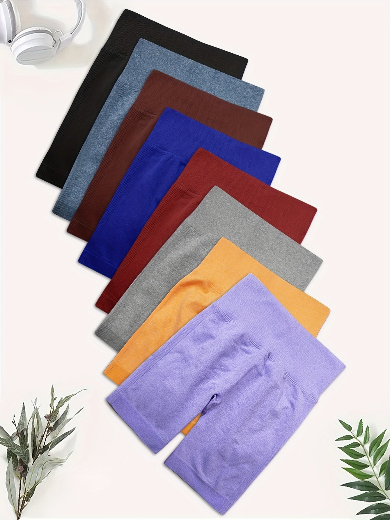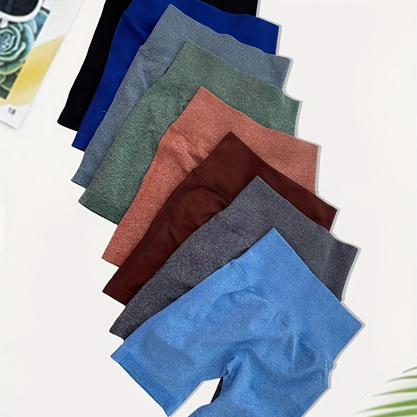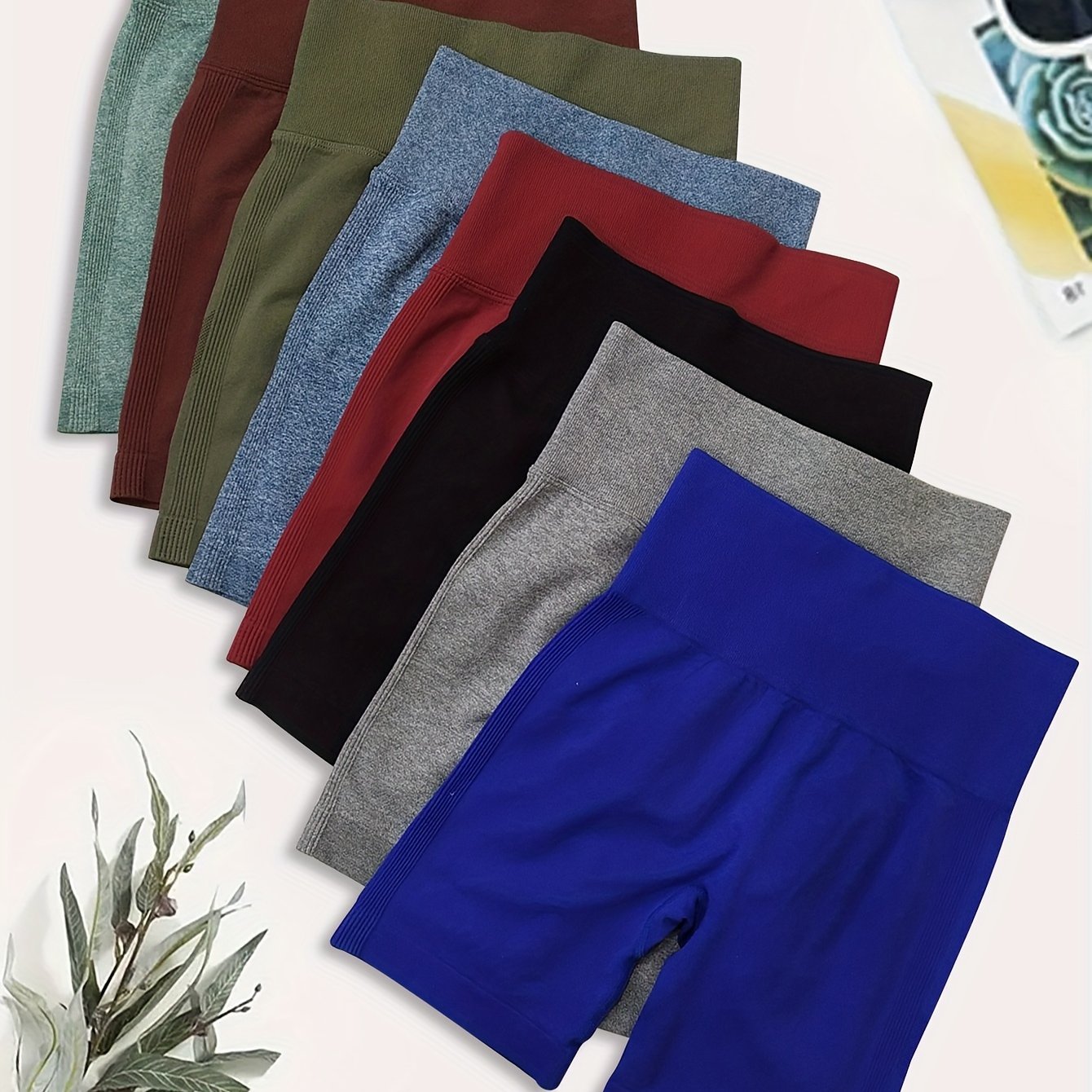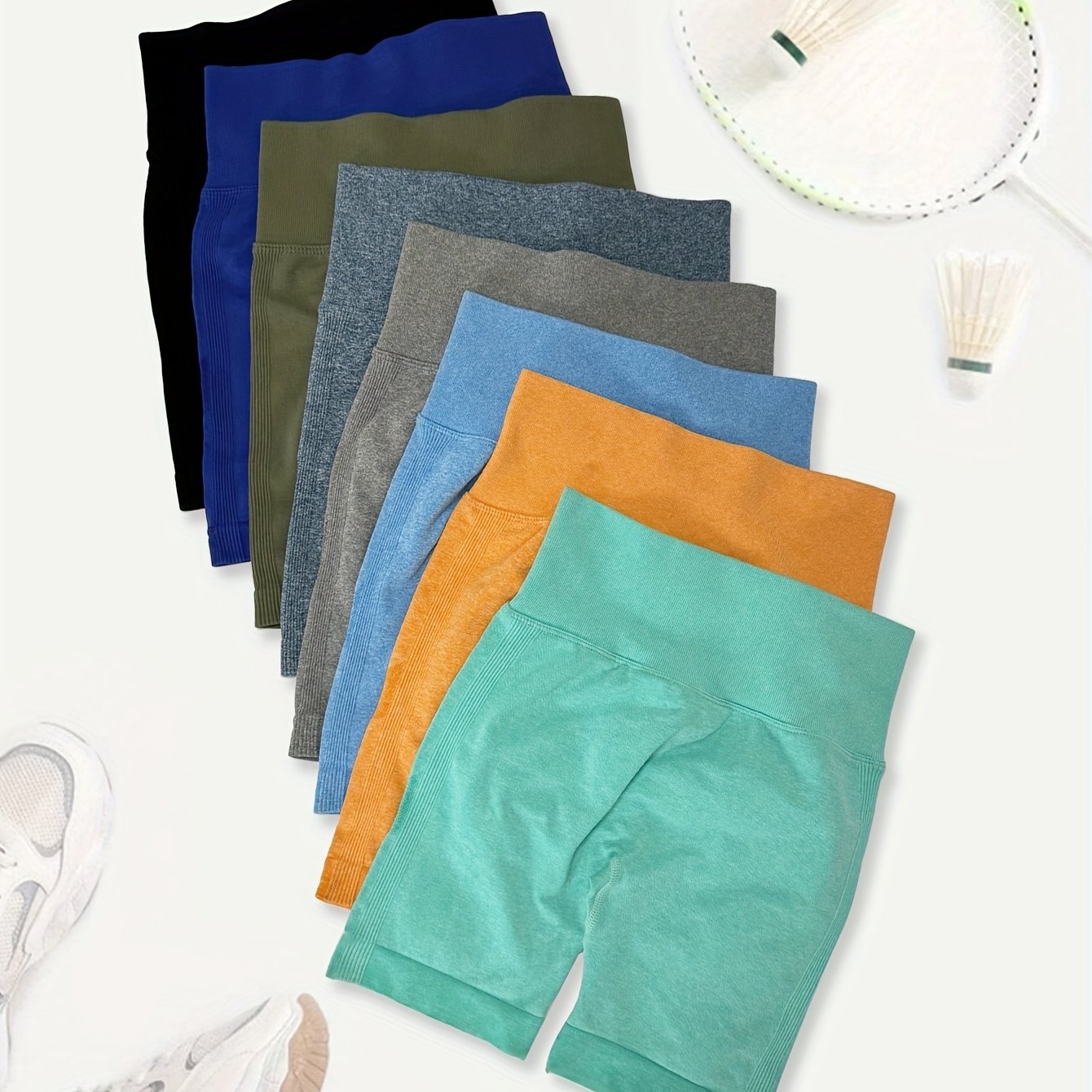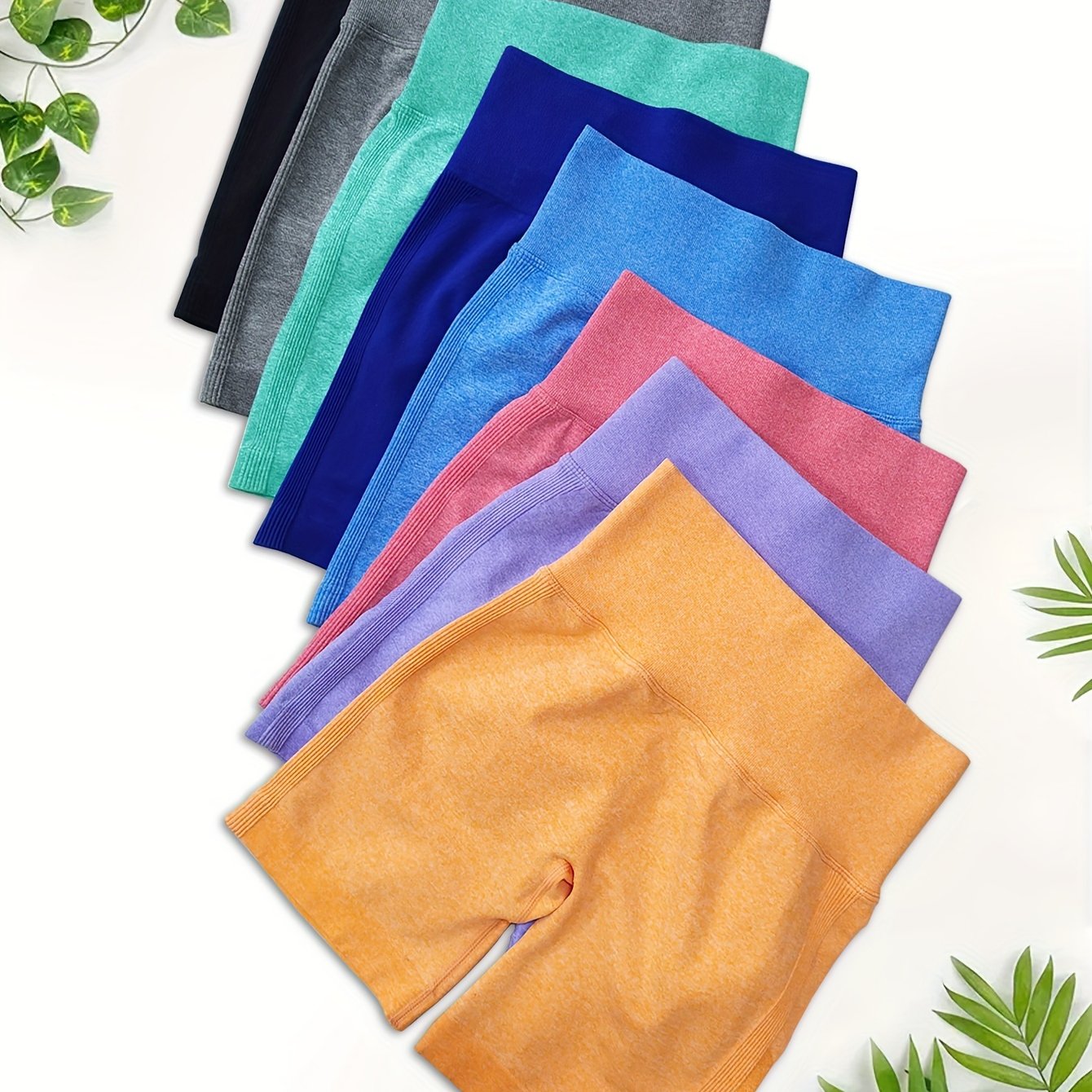 High Waisted 8pcs Solid Color Sports Shorts