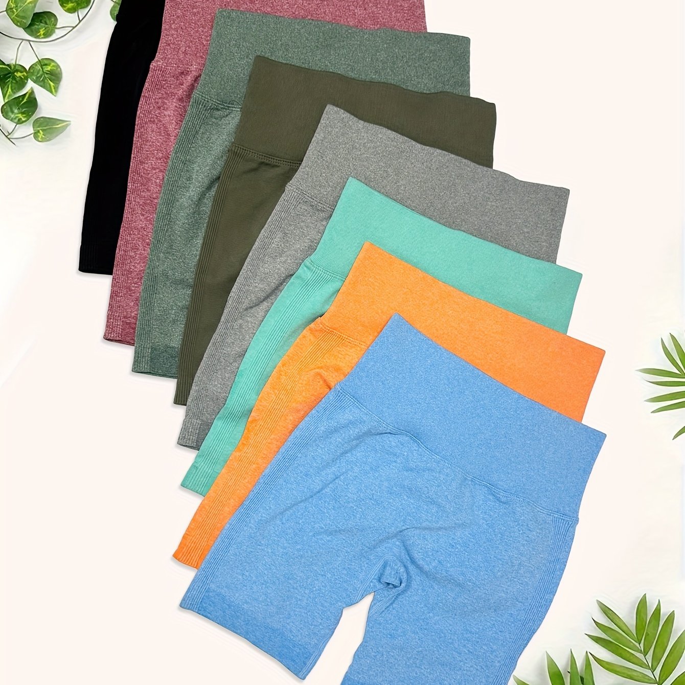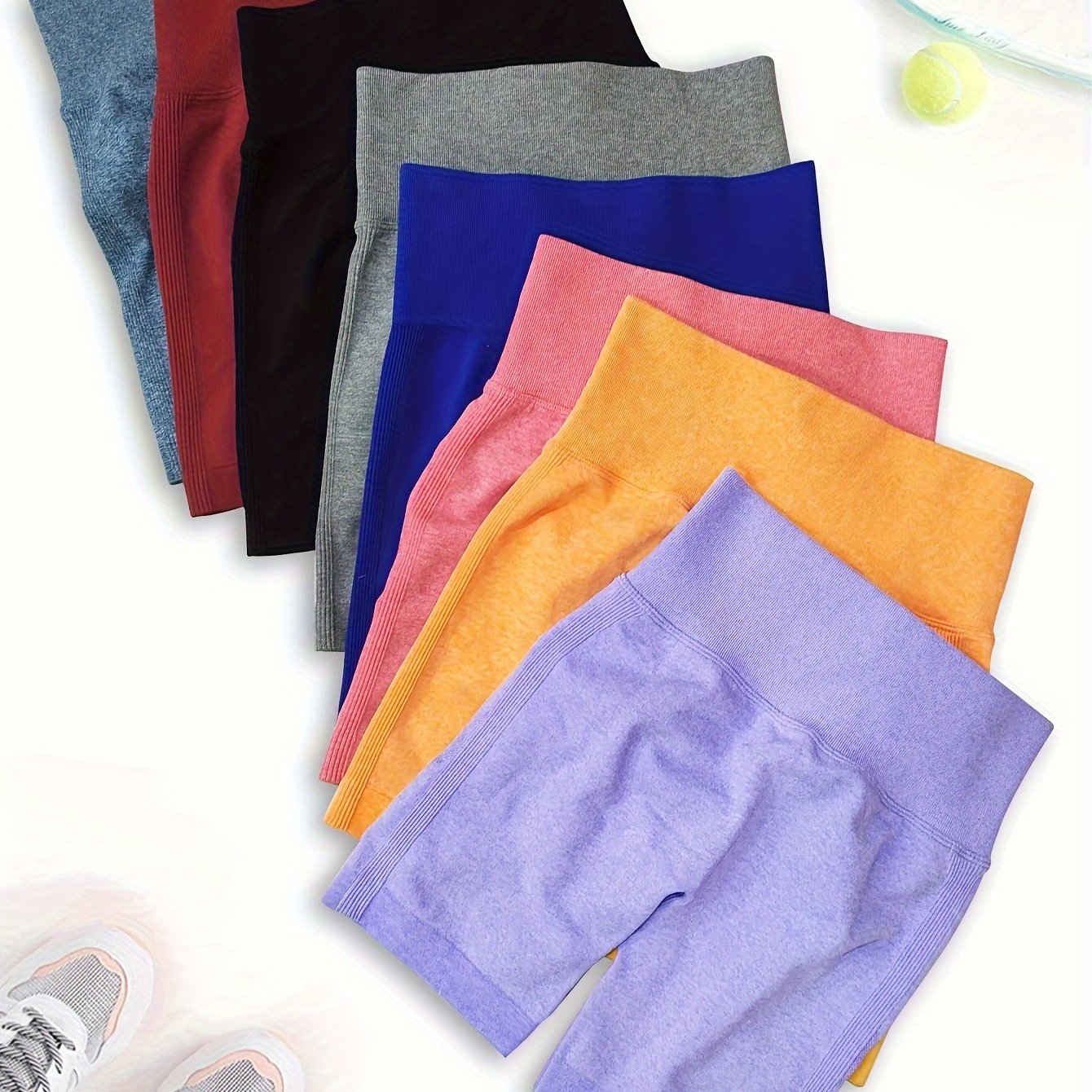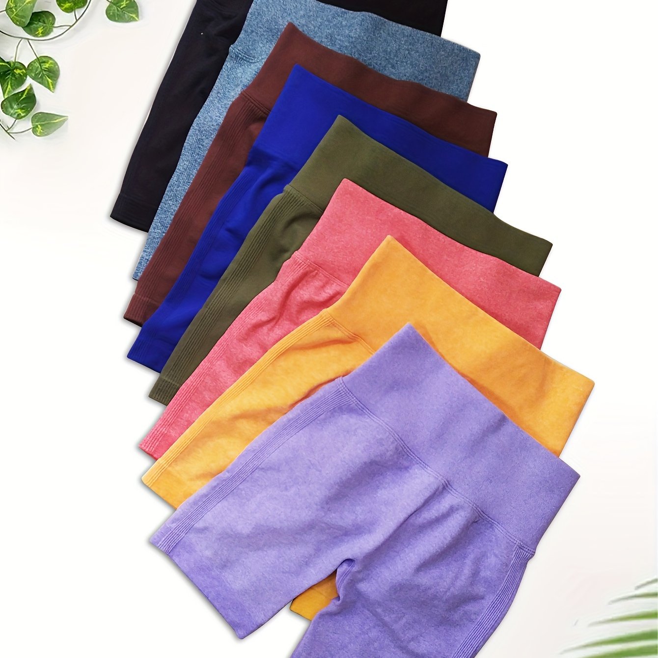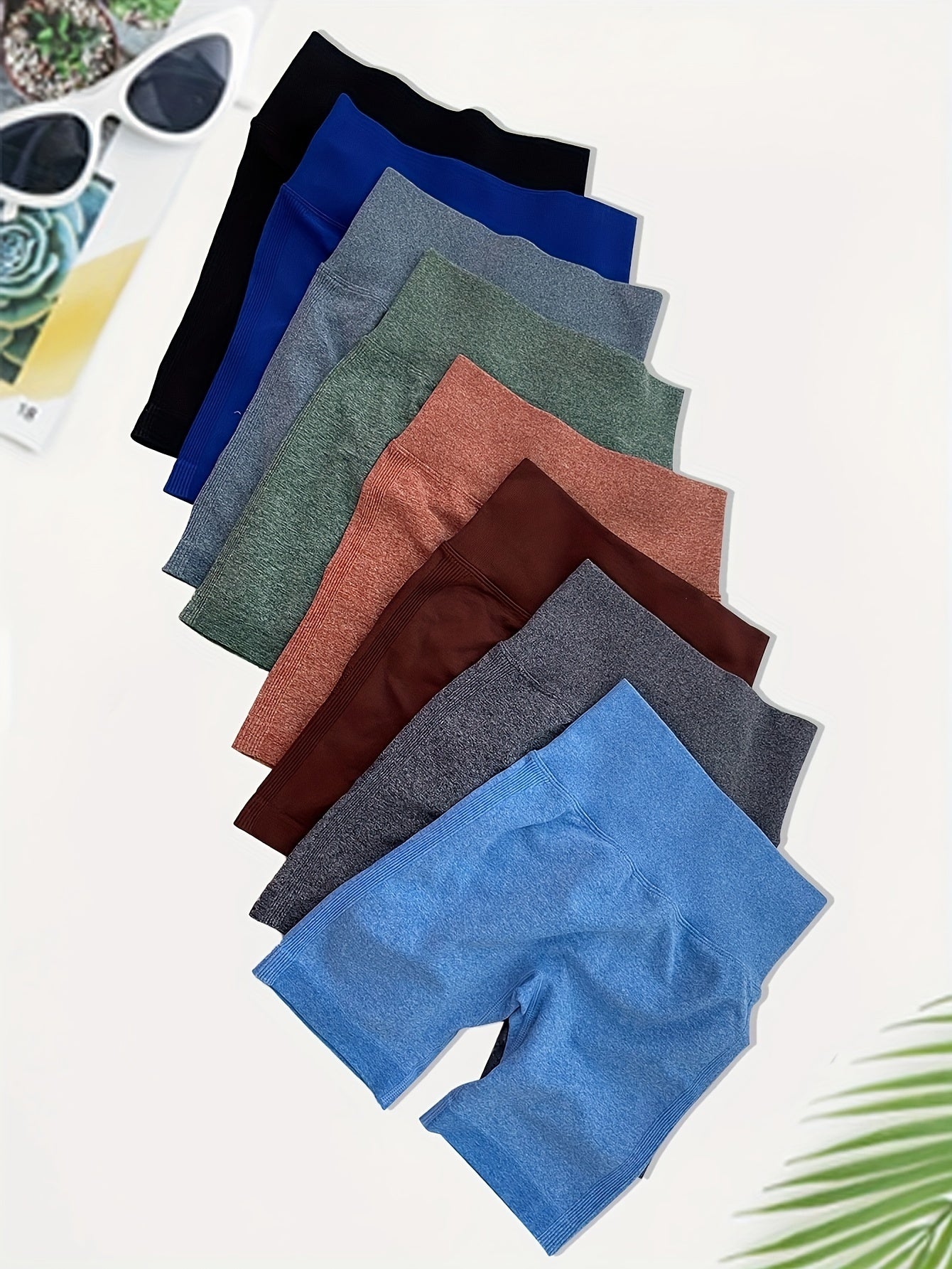 High Waisted 8pcs Solid Color Sports Shorts