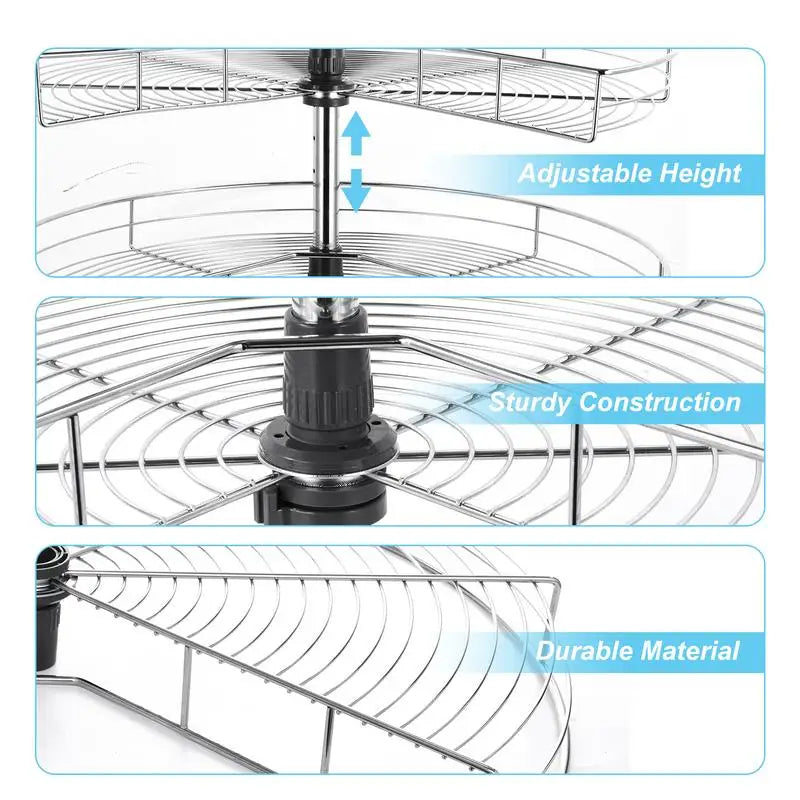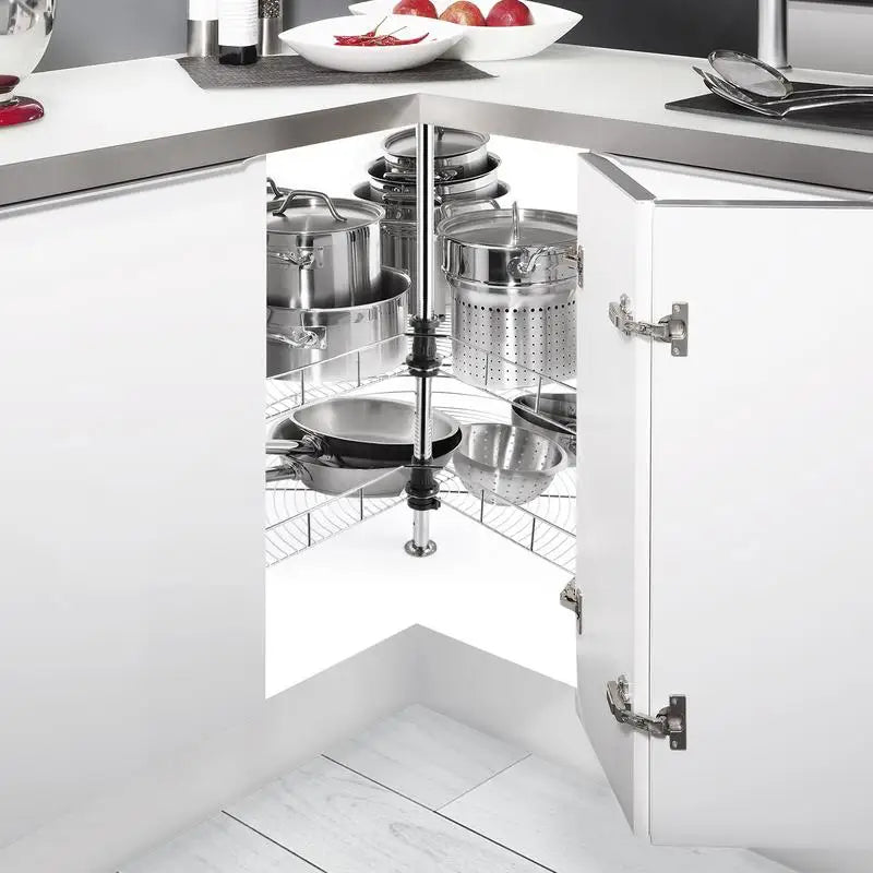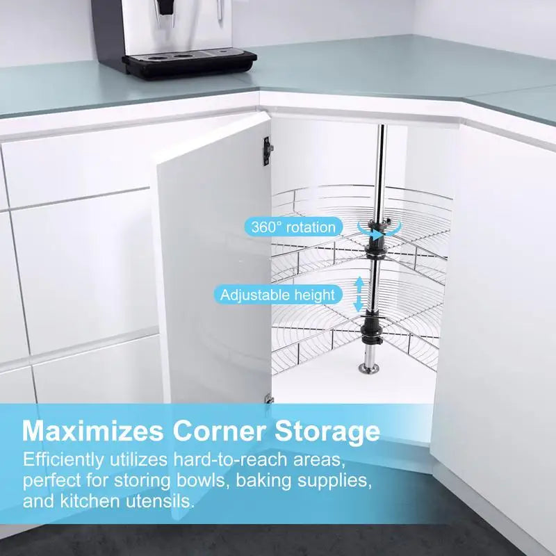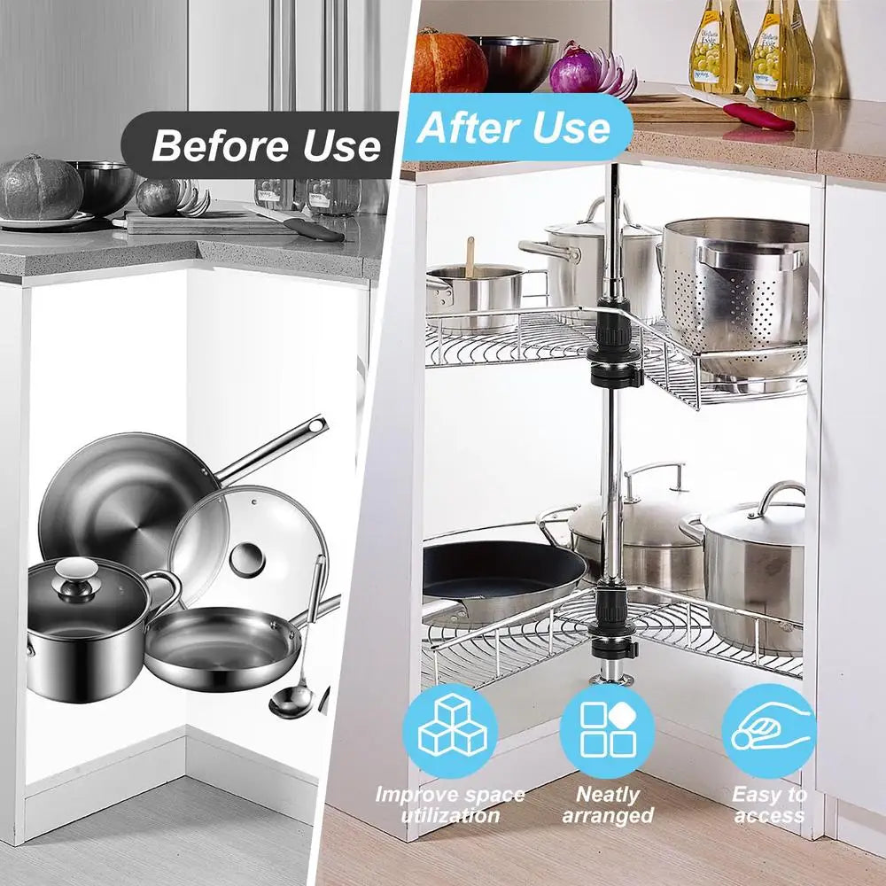 - Maximized Corner Storage: Perfect for corner cabinets, making it easy to store and access bowls, baking supplies, and kitchen utensils.