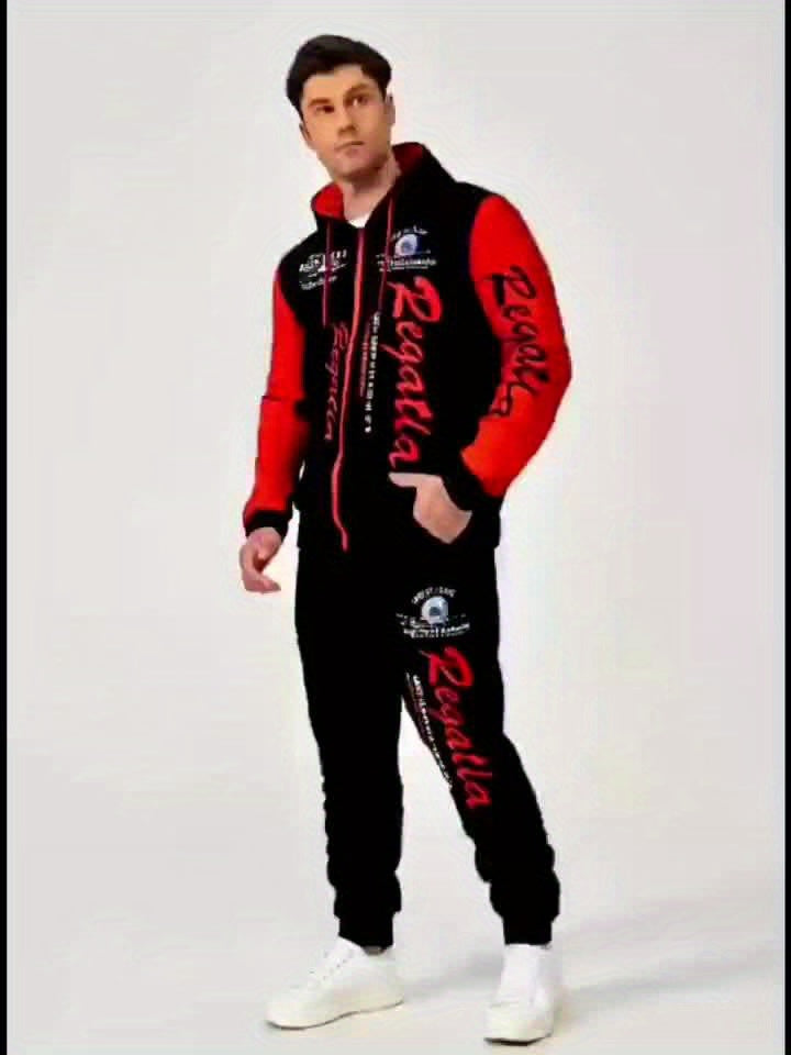 Men's Hooded Letter Printed Sportswear Set,