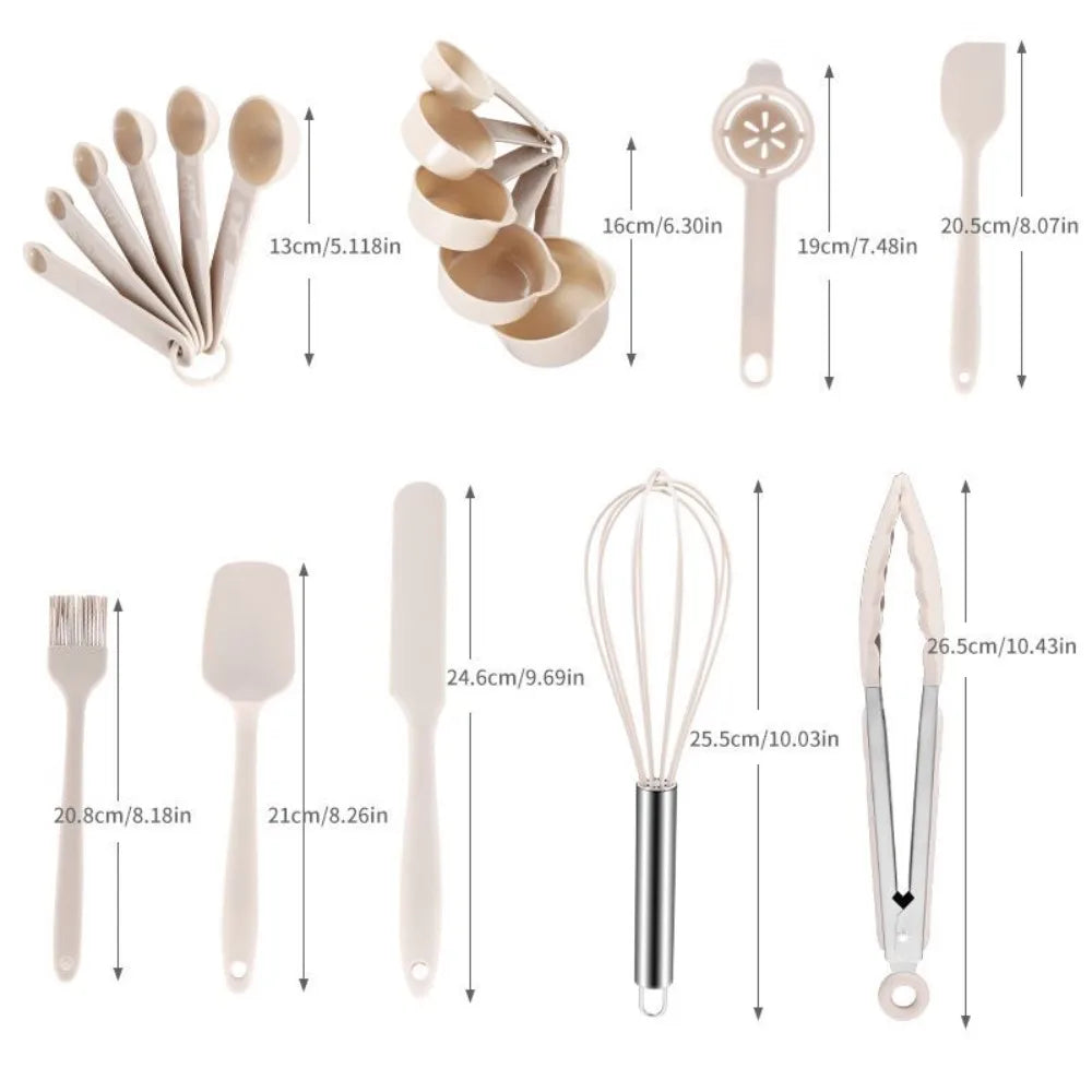 - Complete Kitchen Set – Along with six bowls, this set includes essential kitchen tools: a brush, spatula, whisk, and measuring spoons for all your cooking and baking needs.