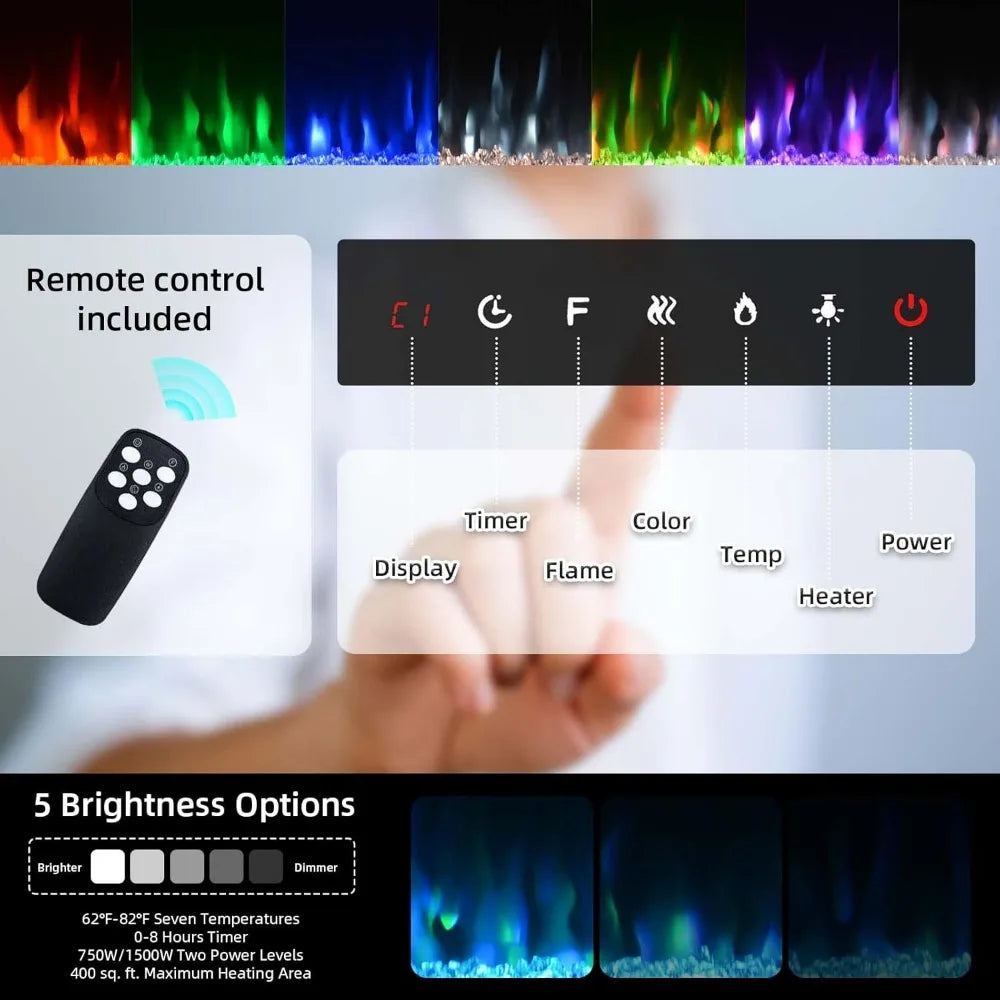 - Flame and Heat Independent: The flame effect and heating function are independent of each other, and the flame effect can be operated with or without heating