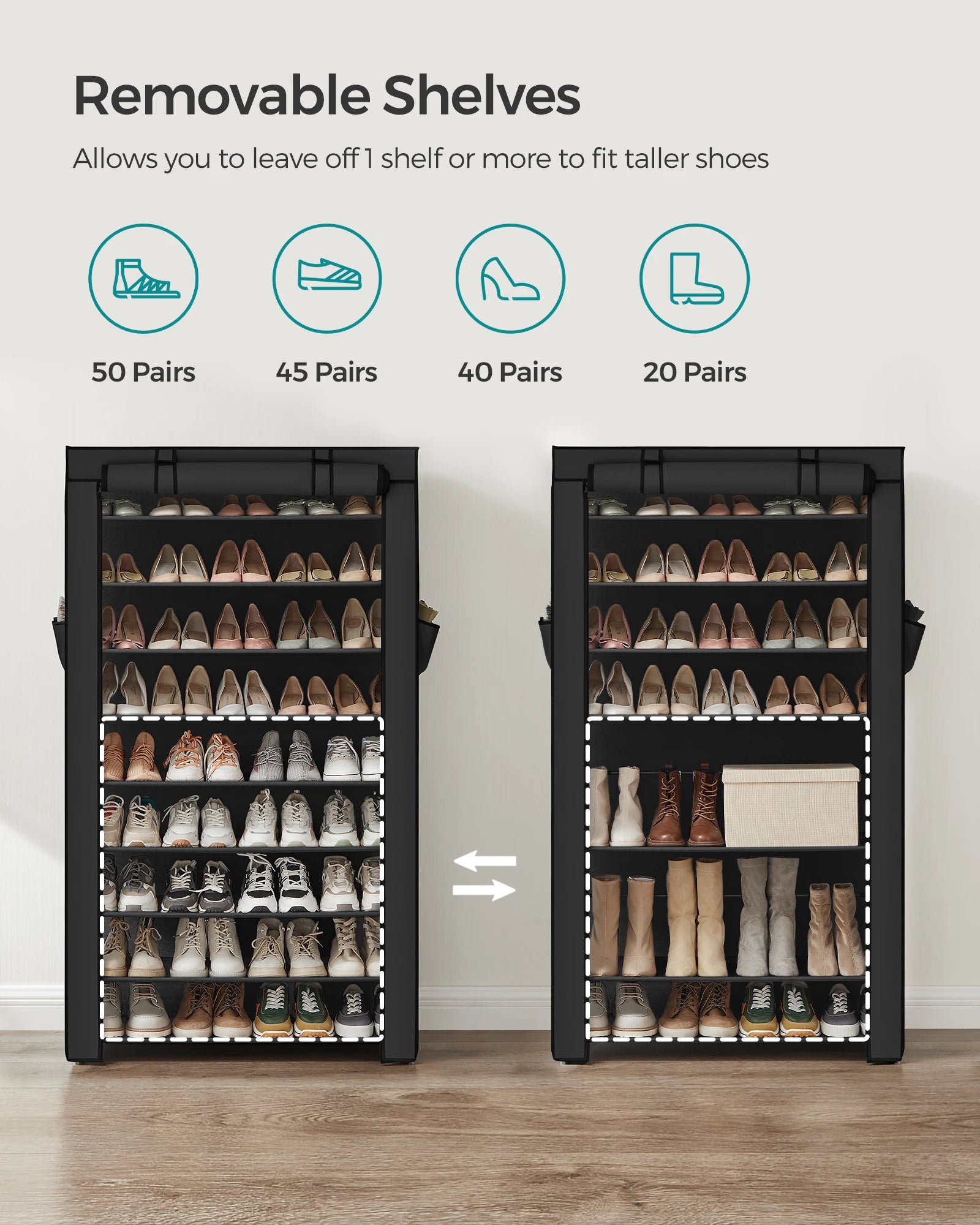 [Flexible Shelf] Apart from the 9 tiers for keeping your sneakers, flats, or loafers neatly organized, this shoe storage organizer also boasts a customizable gene—you can simply remove a layer to fit boots, high heels, or storage boxes