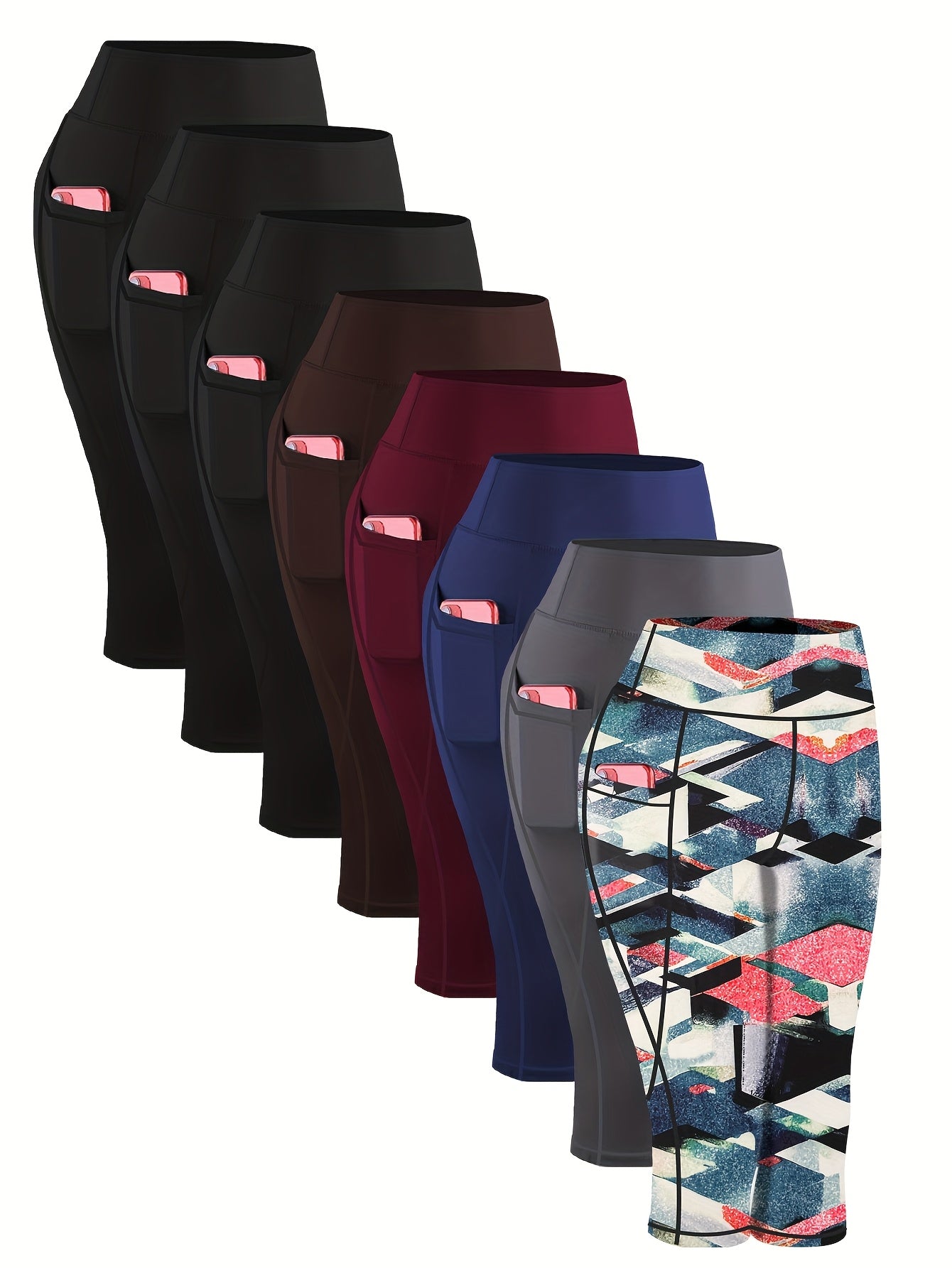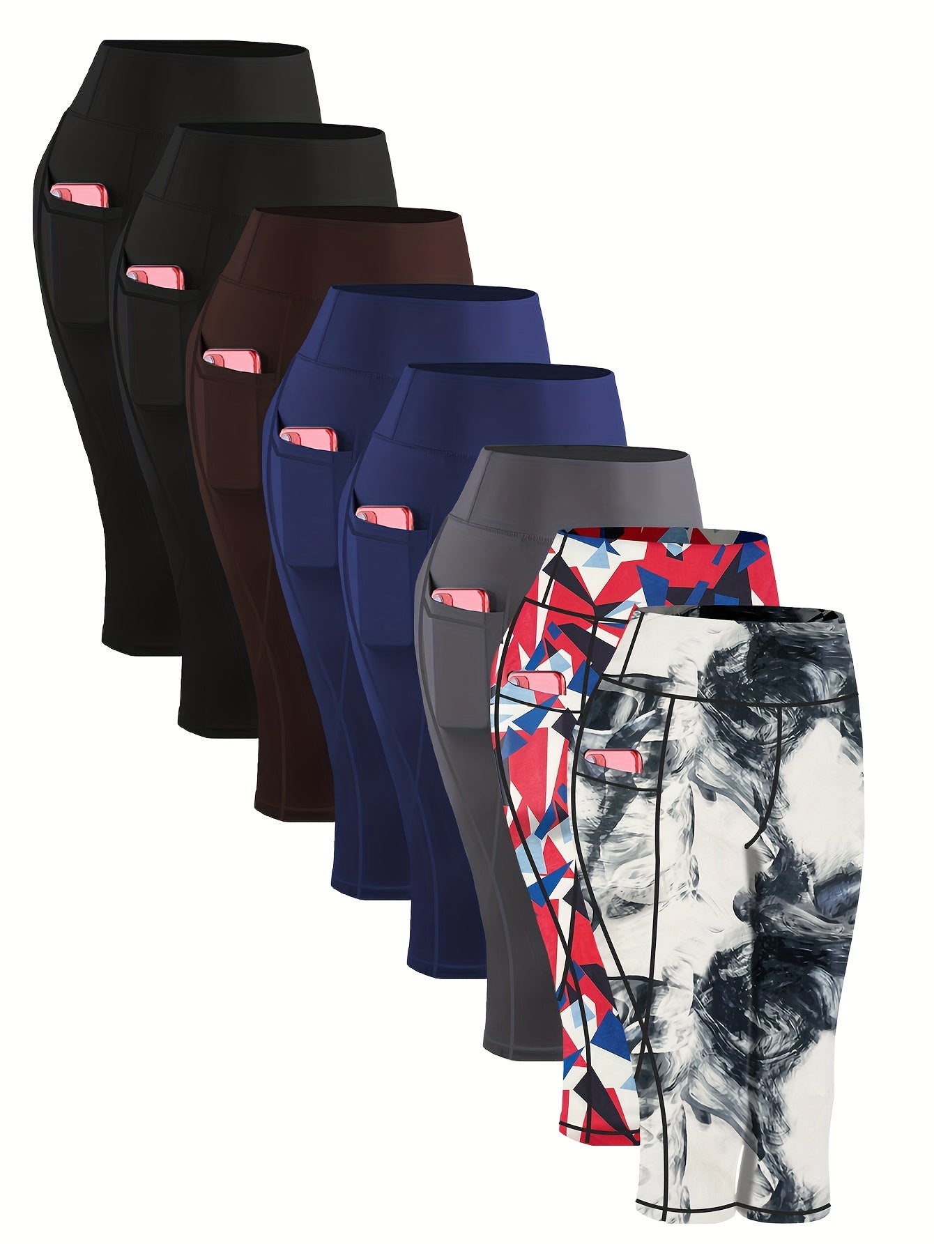 [Stretchy | Yoga] 8pcs Plus Size High-Waisted Yoga Leggings |